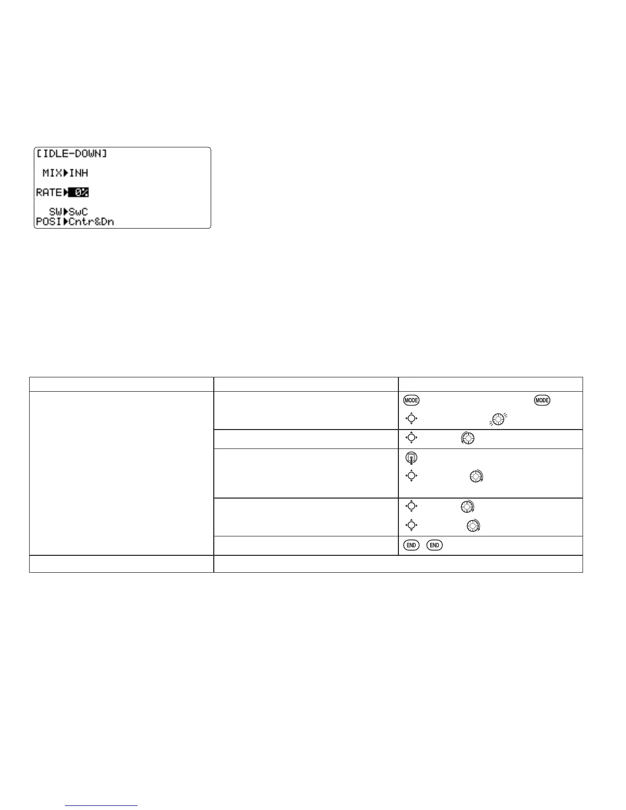 *Normally a value of 10- 20%. Secure the fuselage, engine running. Set the THROTTLE STICK to idle. Adjust the