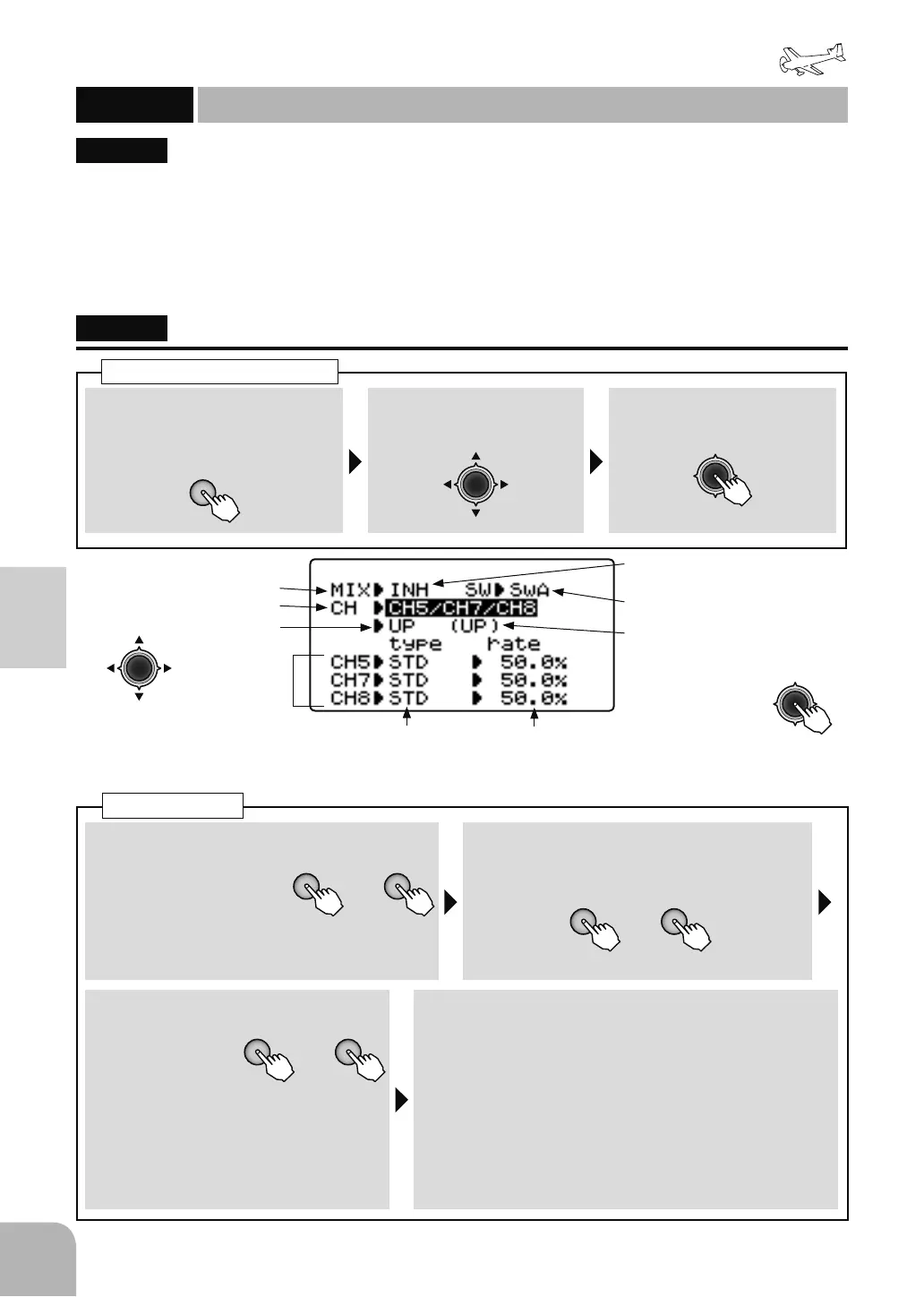 ● WhenusingaFutabaGYAgyro,selectgyrotypeGY.Thisswitchesthegyrosensitivitysetting