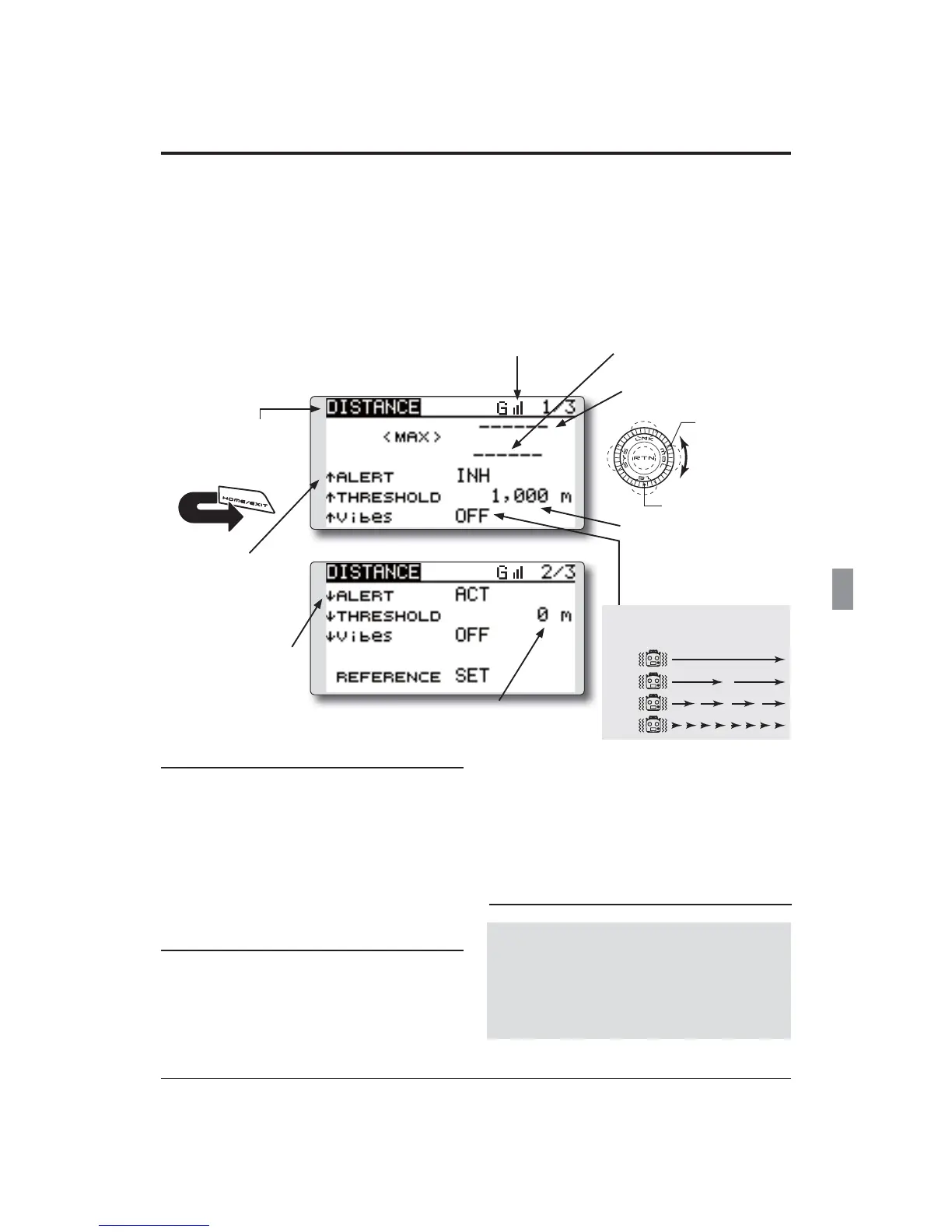 The Distance screen displays and sets altitude