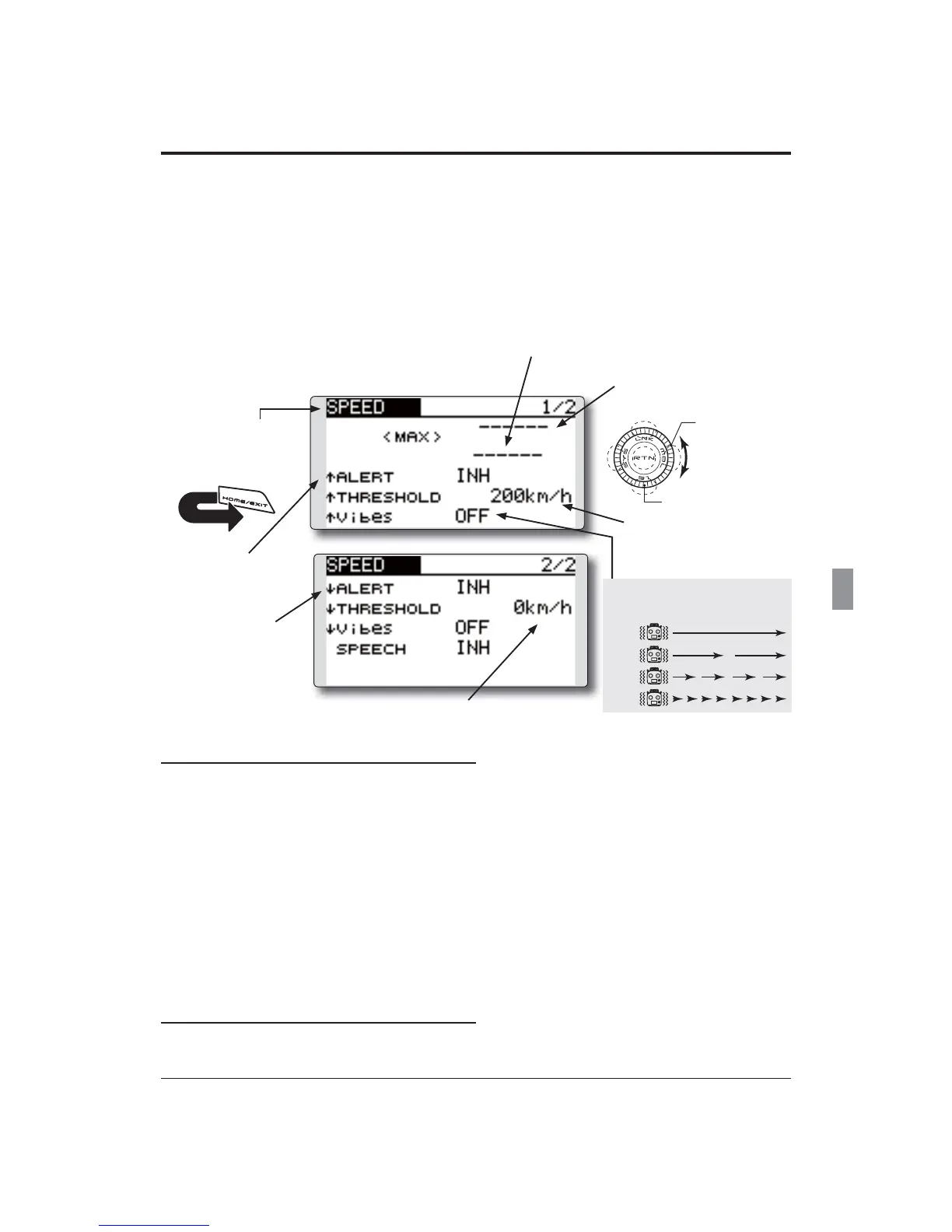 The speed screen displays and sets the speed