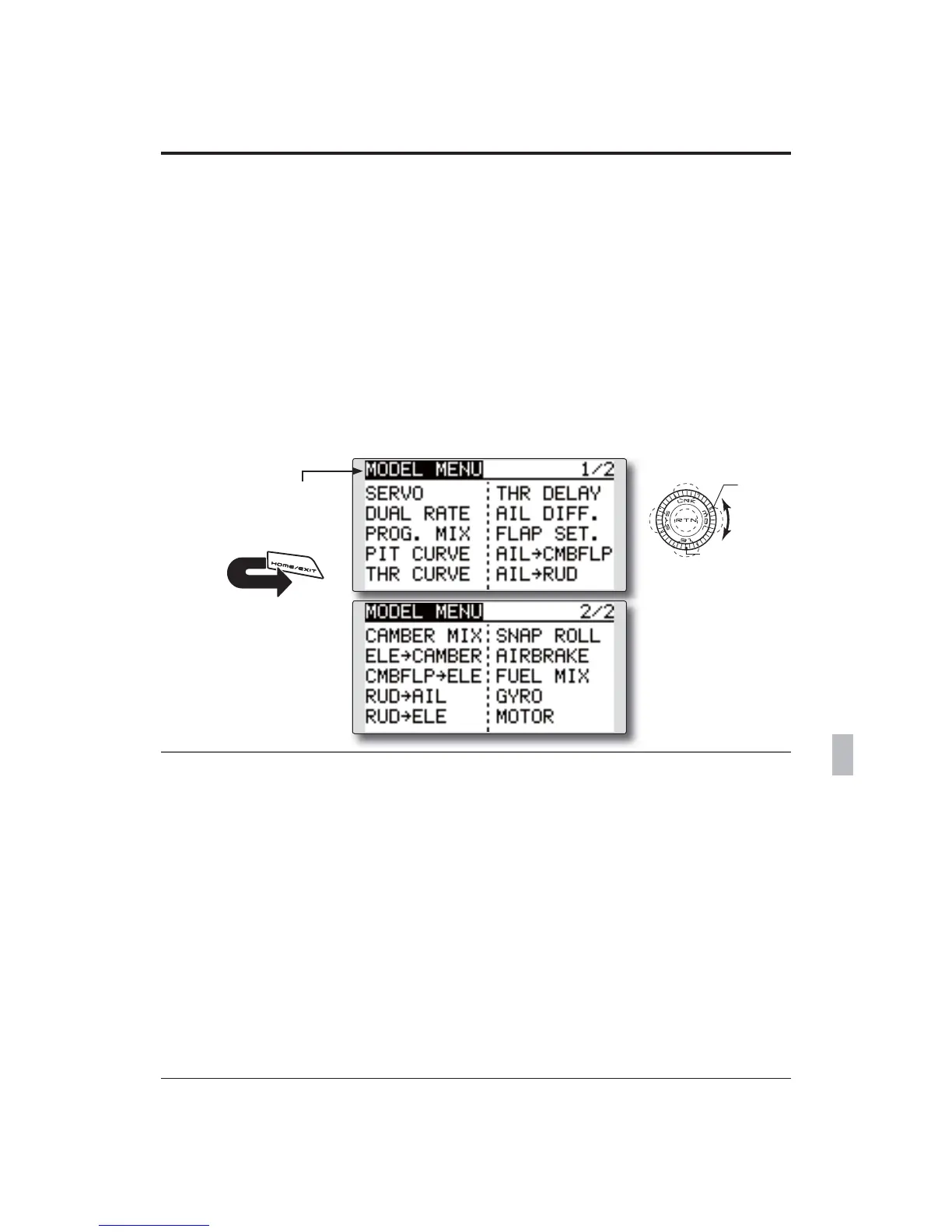 <Model Menu (Airplane/Glider Functions)>