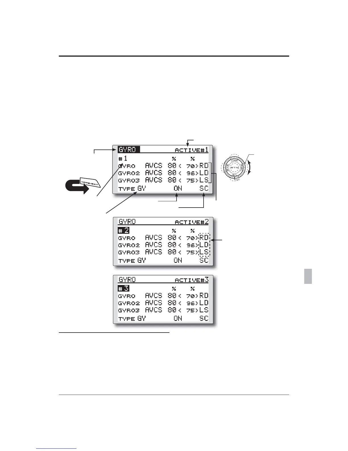 assign the sensitivity channel (Gyro/Gyro2/Gyro3) select an