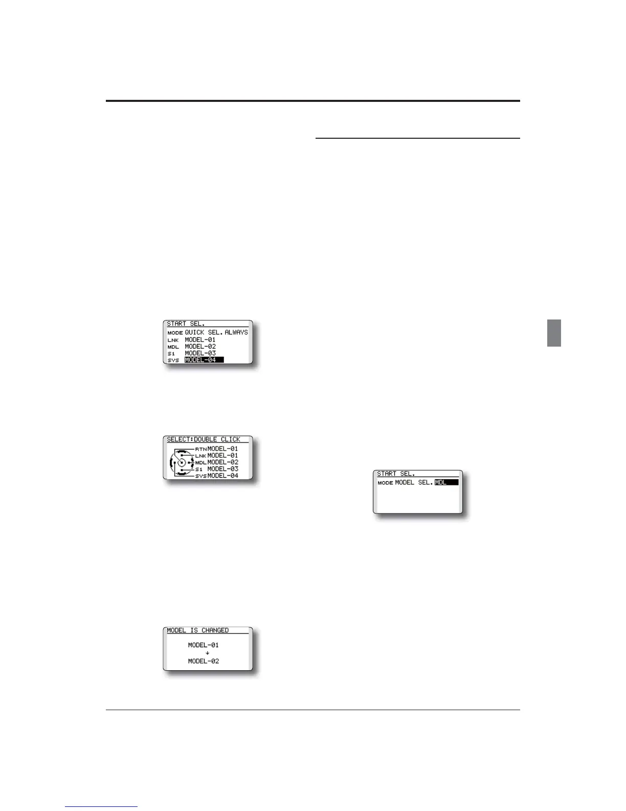 the transmitter is powered-up, the Model Select