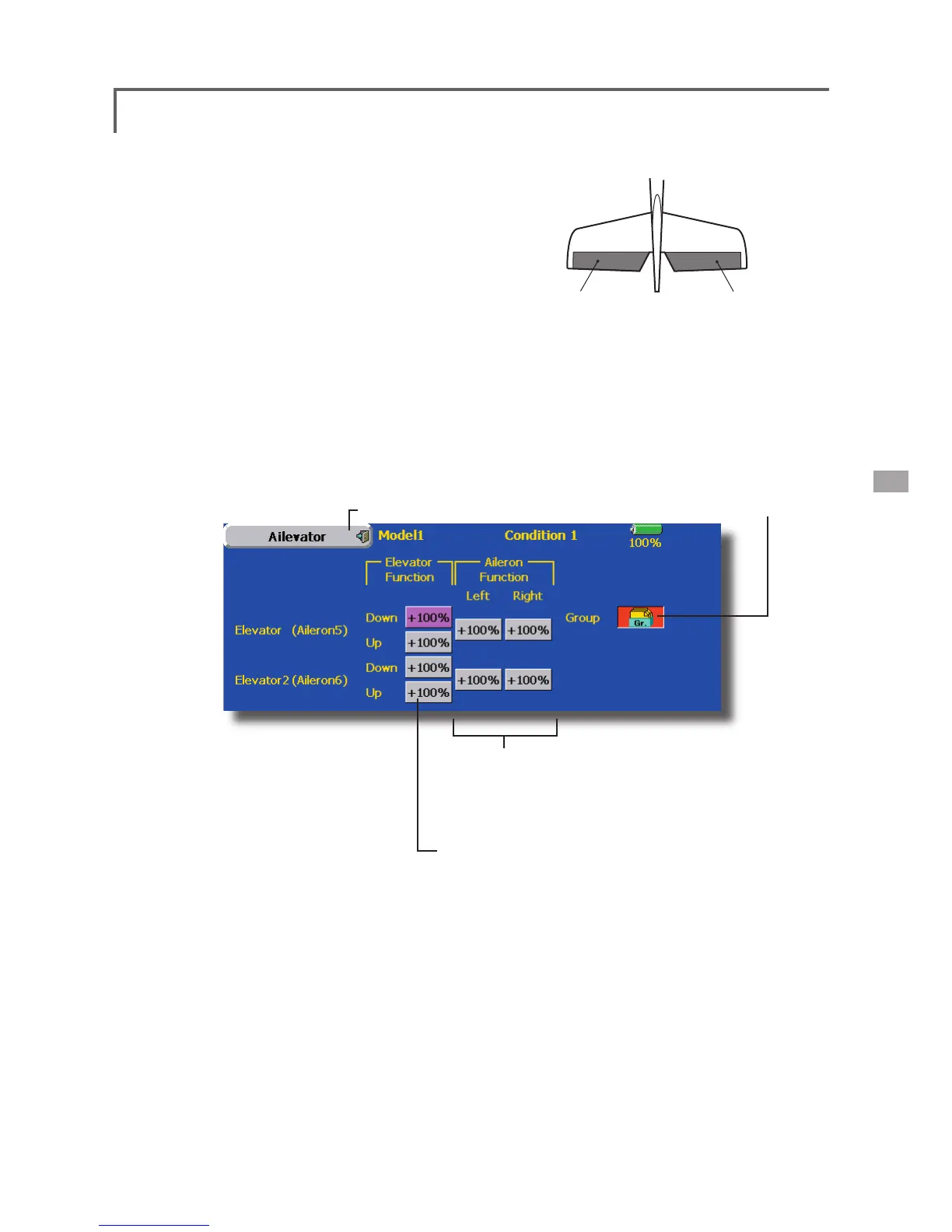 ● When the elevators are used as ailerons, aileron travel