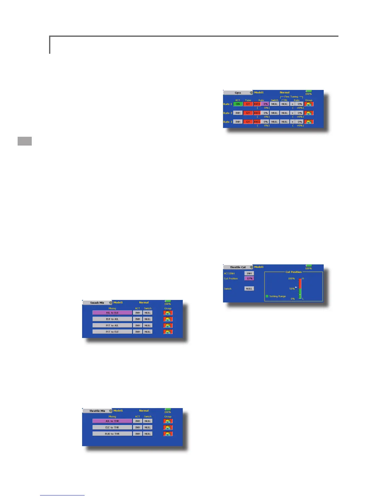 ● Idle up 1/Idle up 2/Throttle hold: Gyro