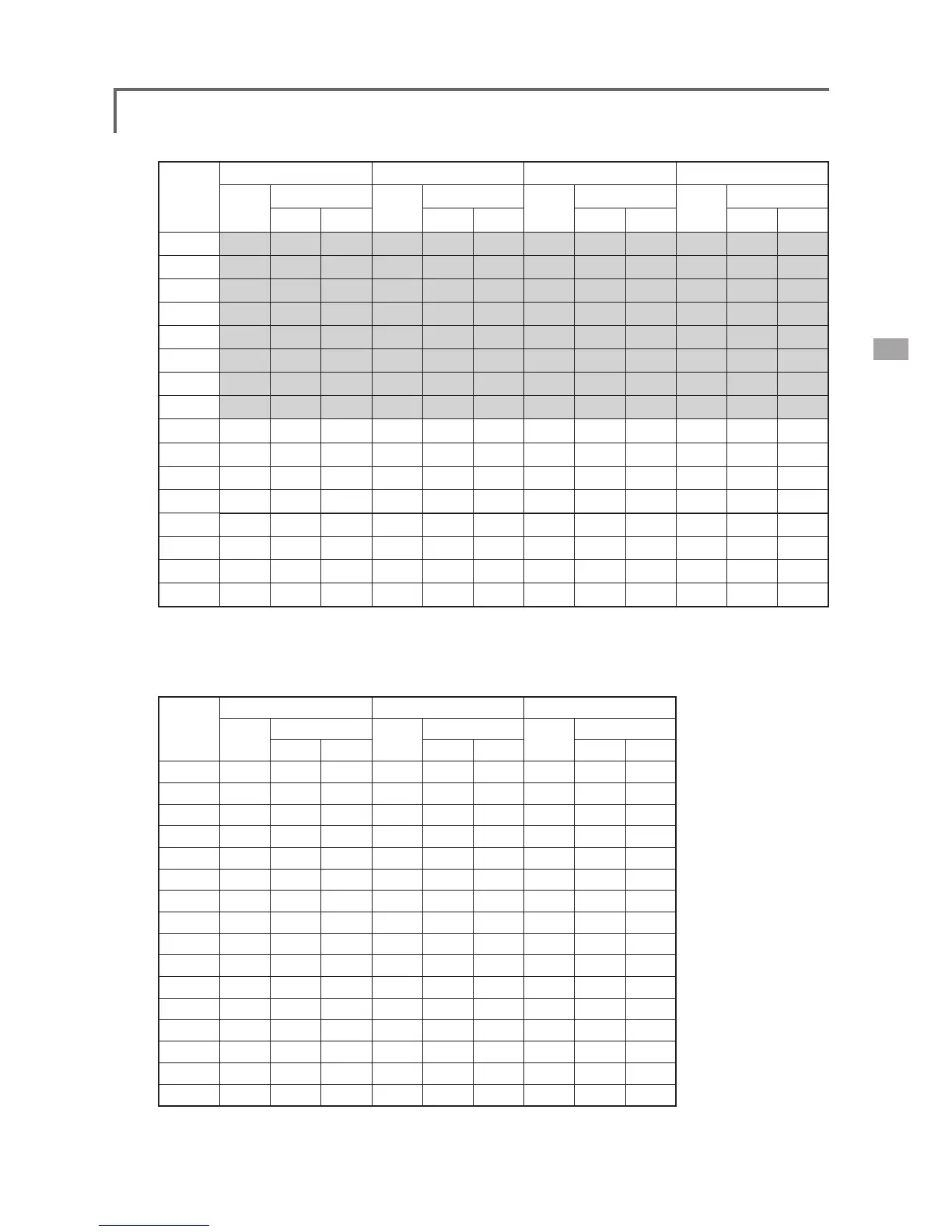 ●When a receiver other than the PCM-G3 type is used, only the shaded part of the table above is