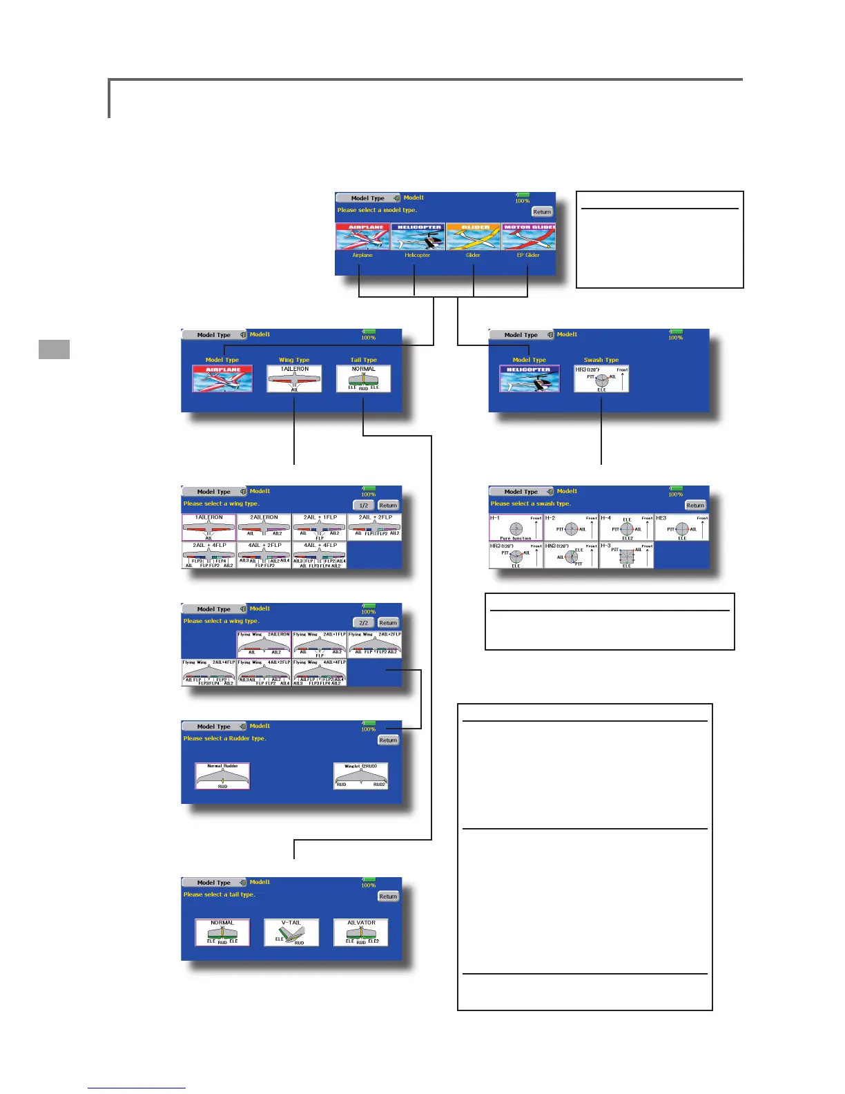 Select from normal, V tail, and elevator.