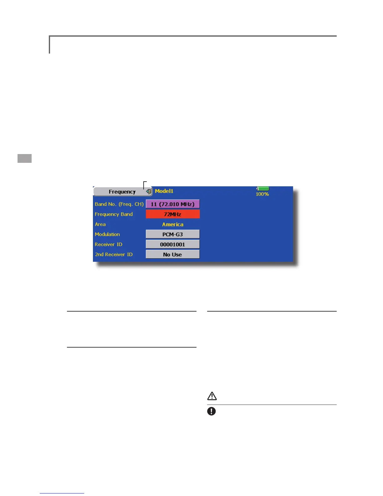 Frequency Band (frequency) setting, modulation mode setting, receiver ID code