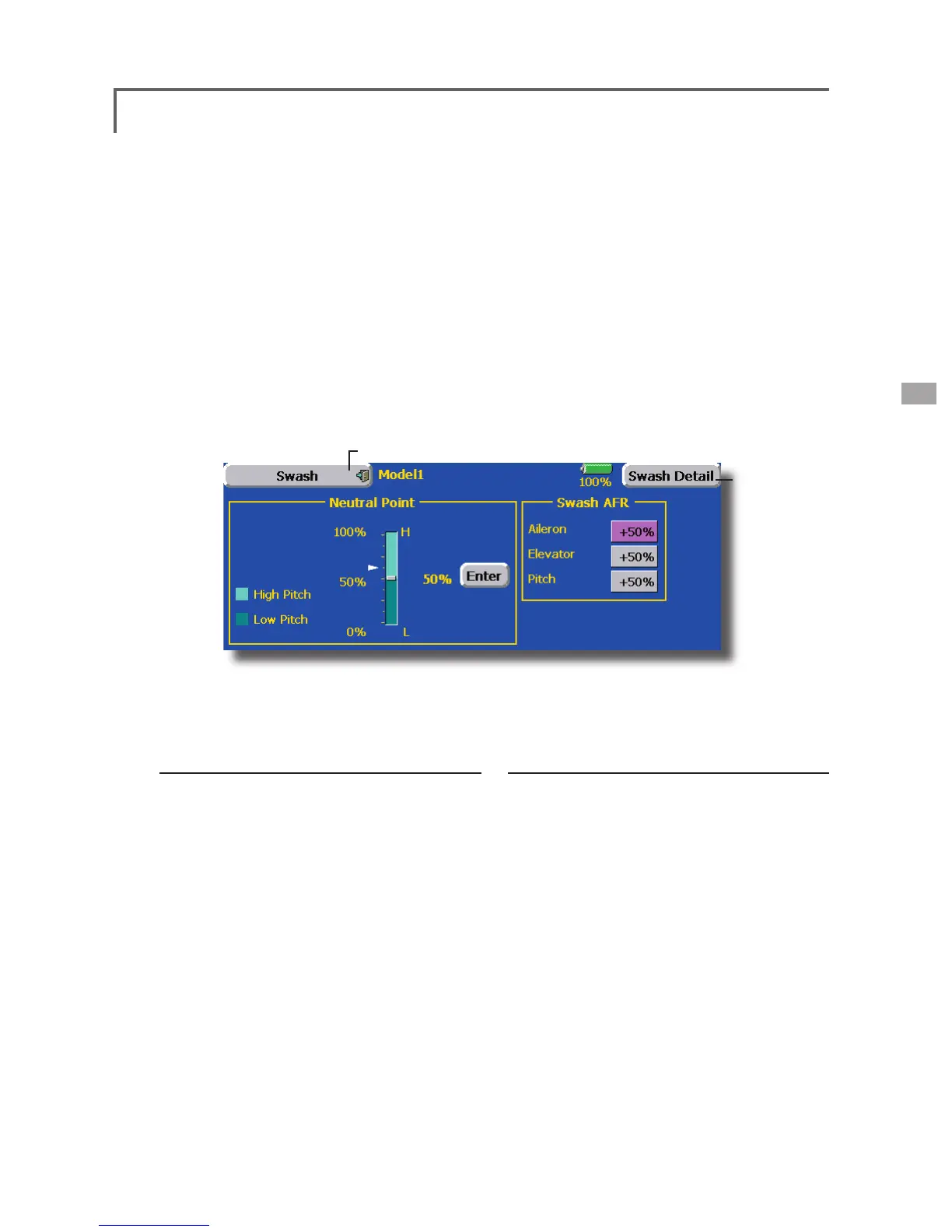 ●Touch the [Swash] button in the Linkage Menu to
