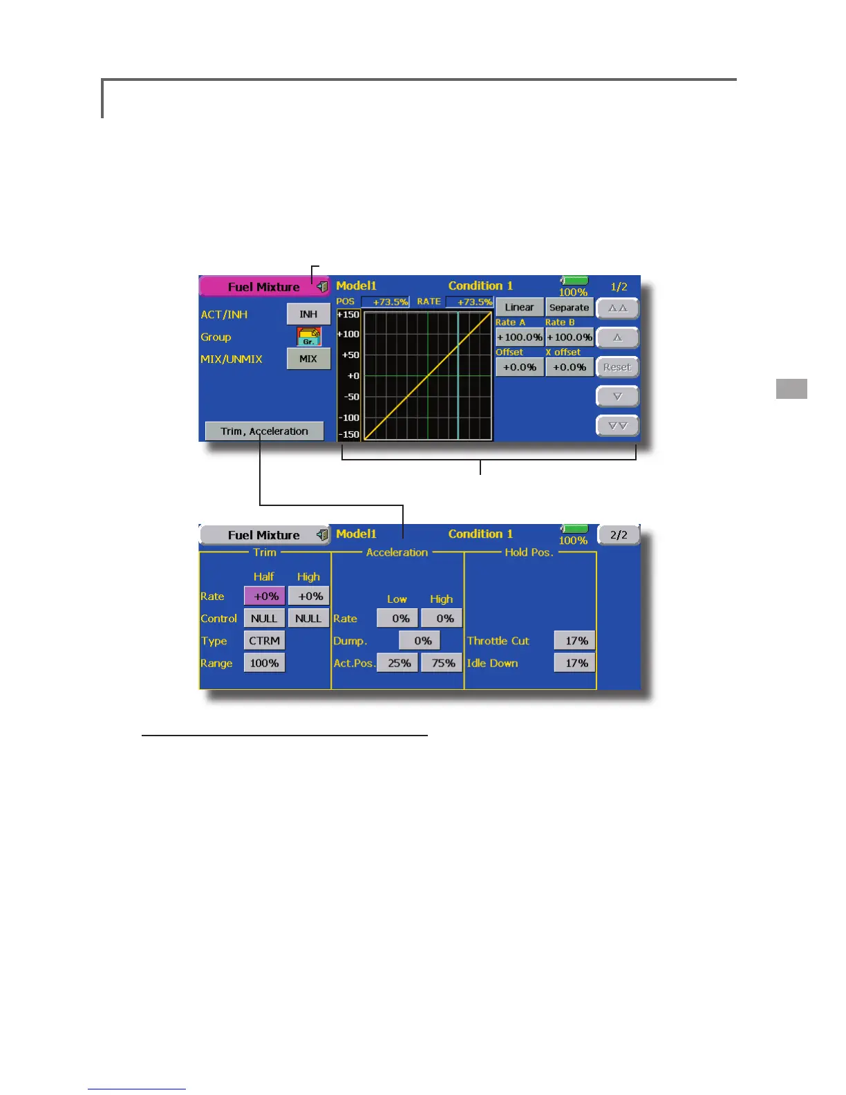 ● Touch the [Fuel Mixture] button in the Model Menu to