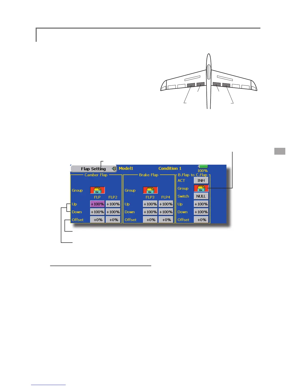 ● Touch the [Flap Setting] button in the Model Menu to