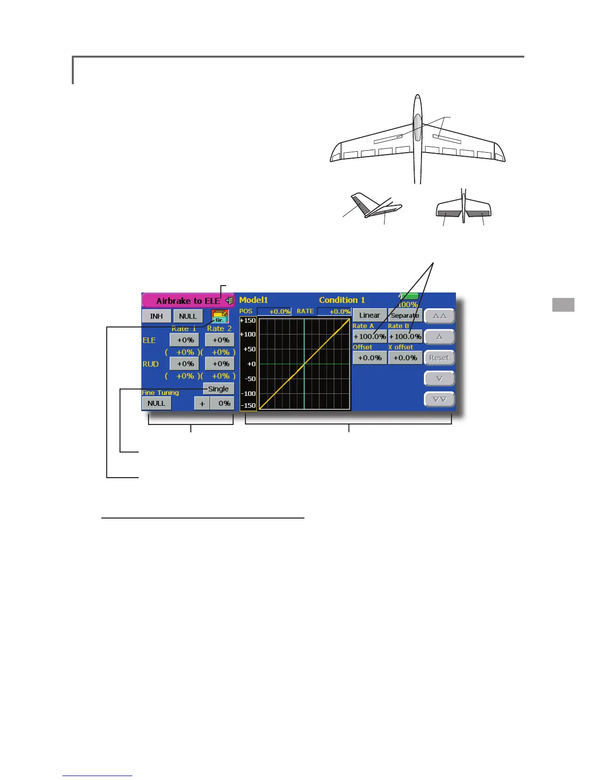 ● Touch the [Airbrake to ELE] button in the Model Menu