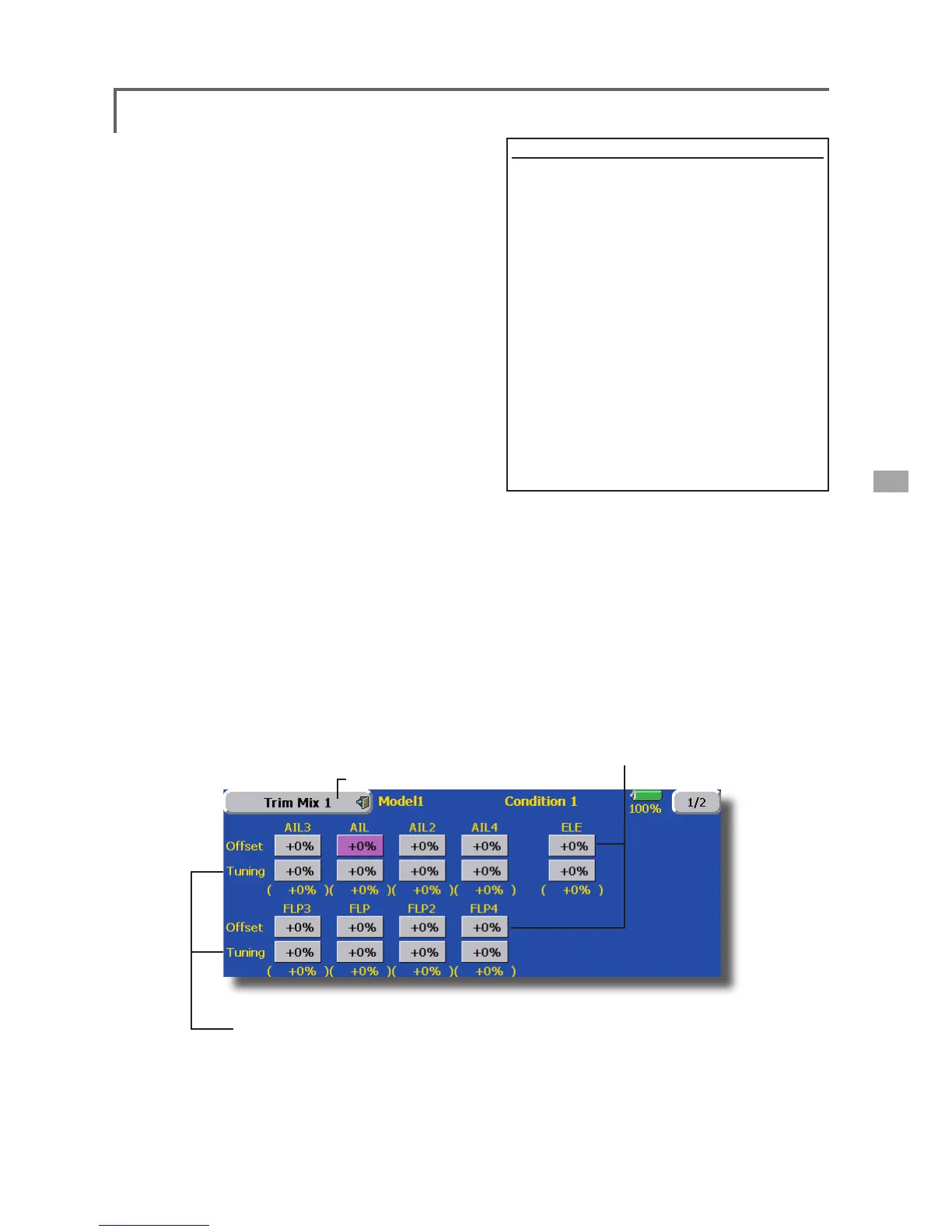 ● Touch the [Trim Mix 1] button in the Model Menu to