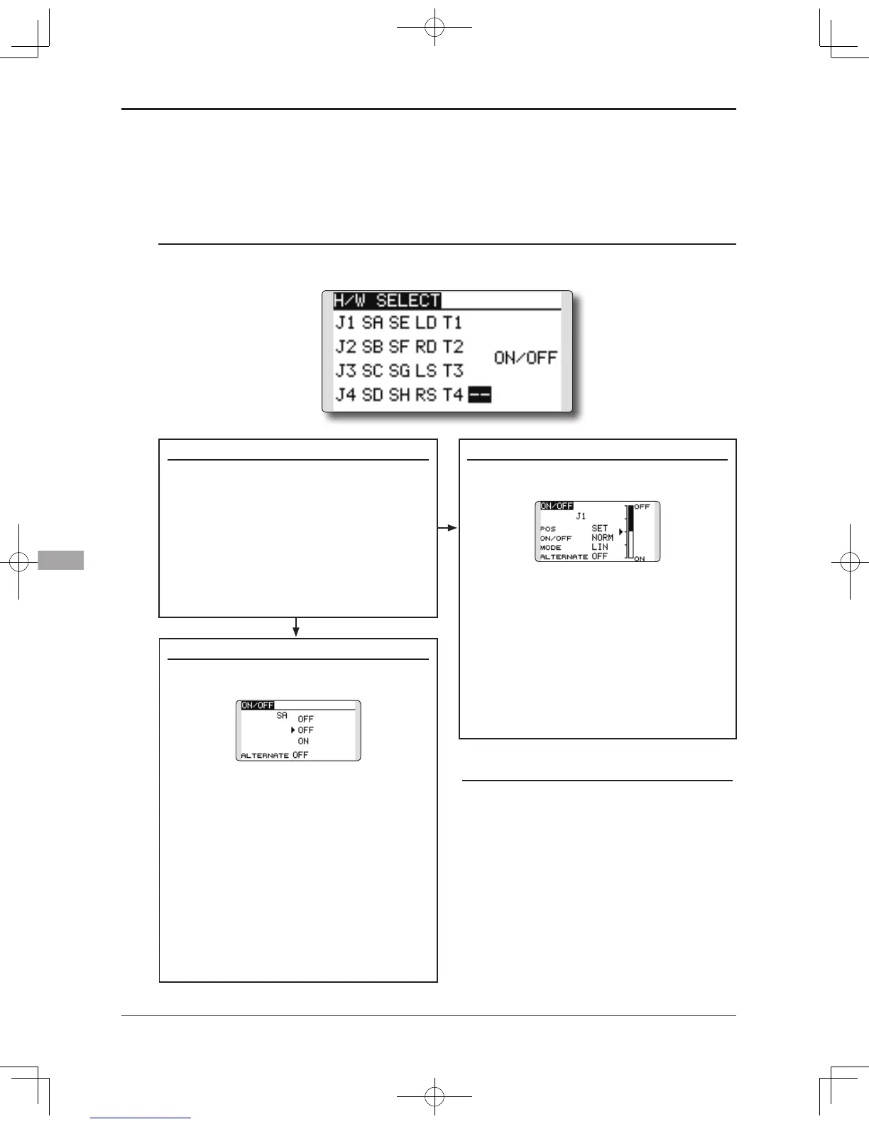 When a switch is selected at a mixing function, etc., the selection screen shown below is called.