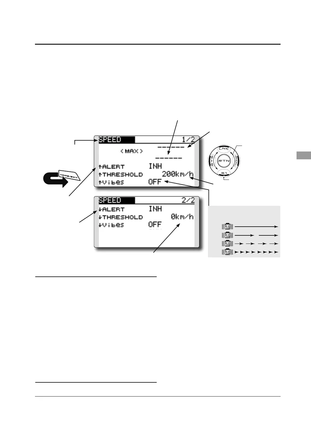 The speed screen displays and sets the speed data
