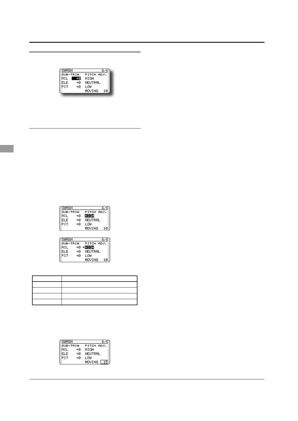 Subtrim can be set on the last page of the swash