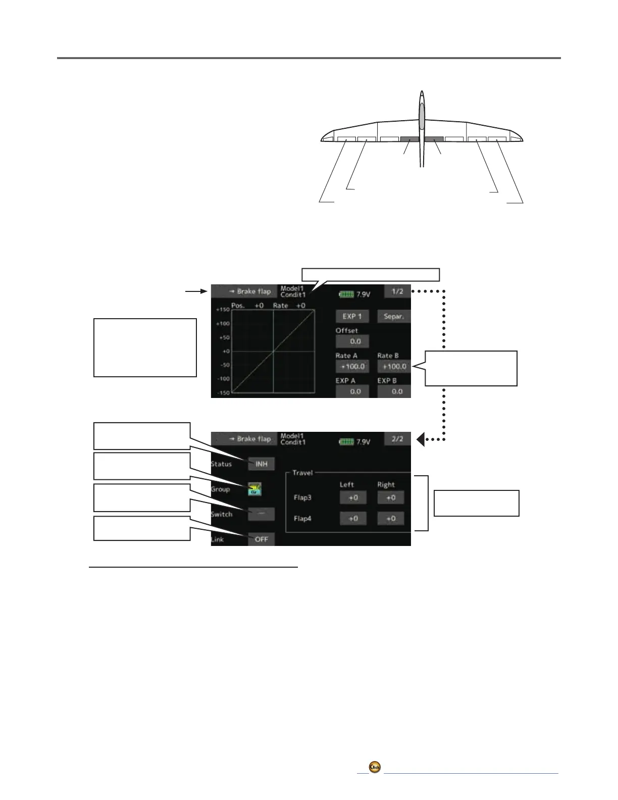 ● Select [AIL→ Brake flap] at the model