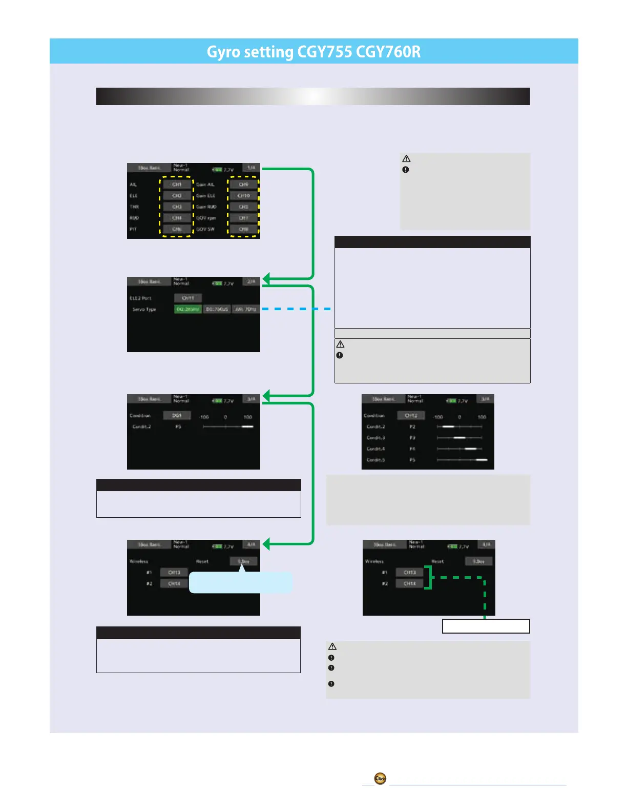 be used, then set them to [INH]. The CGY760R/CGY755 will then allow you to make gain adjustments within the respective menu.