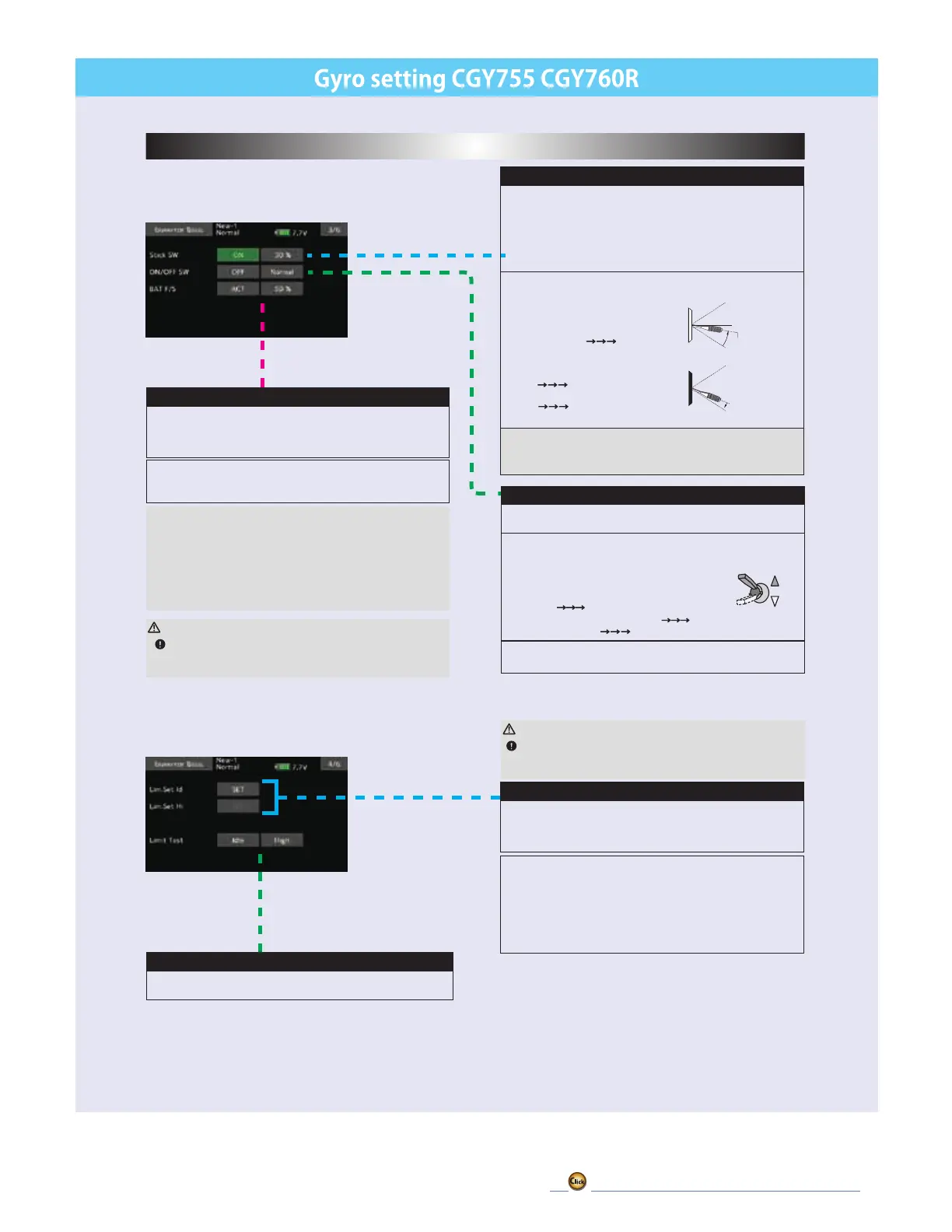 S" for about 3 seconds, the Gx (gyro) LED of the CGY solid red light.