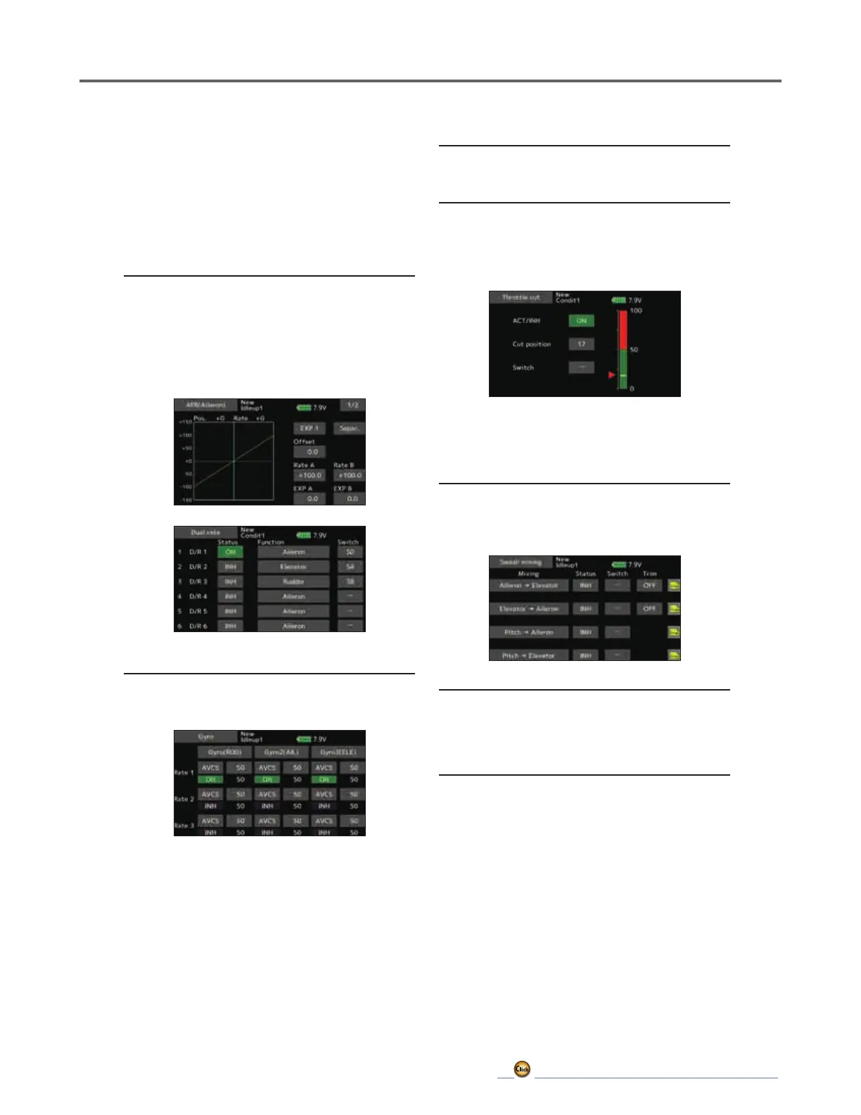●Idle up 1/Idle up 2/Throttle hold: Gyro