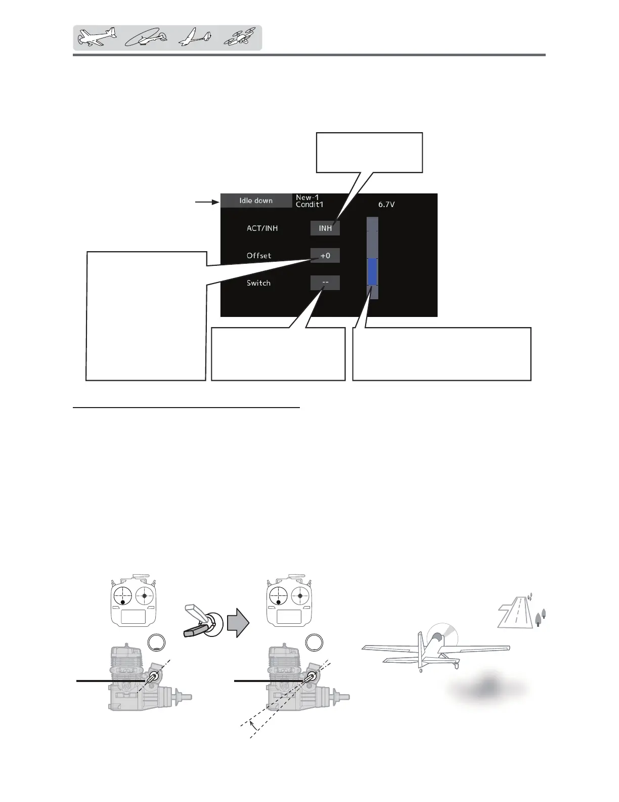 The Idle down function lowers the engine's idle