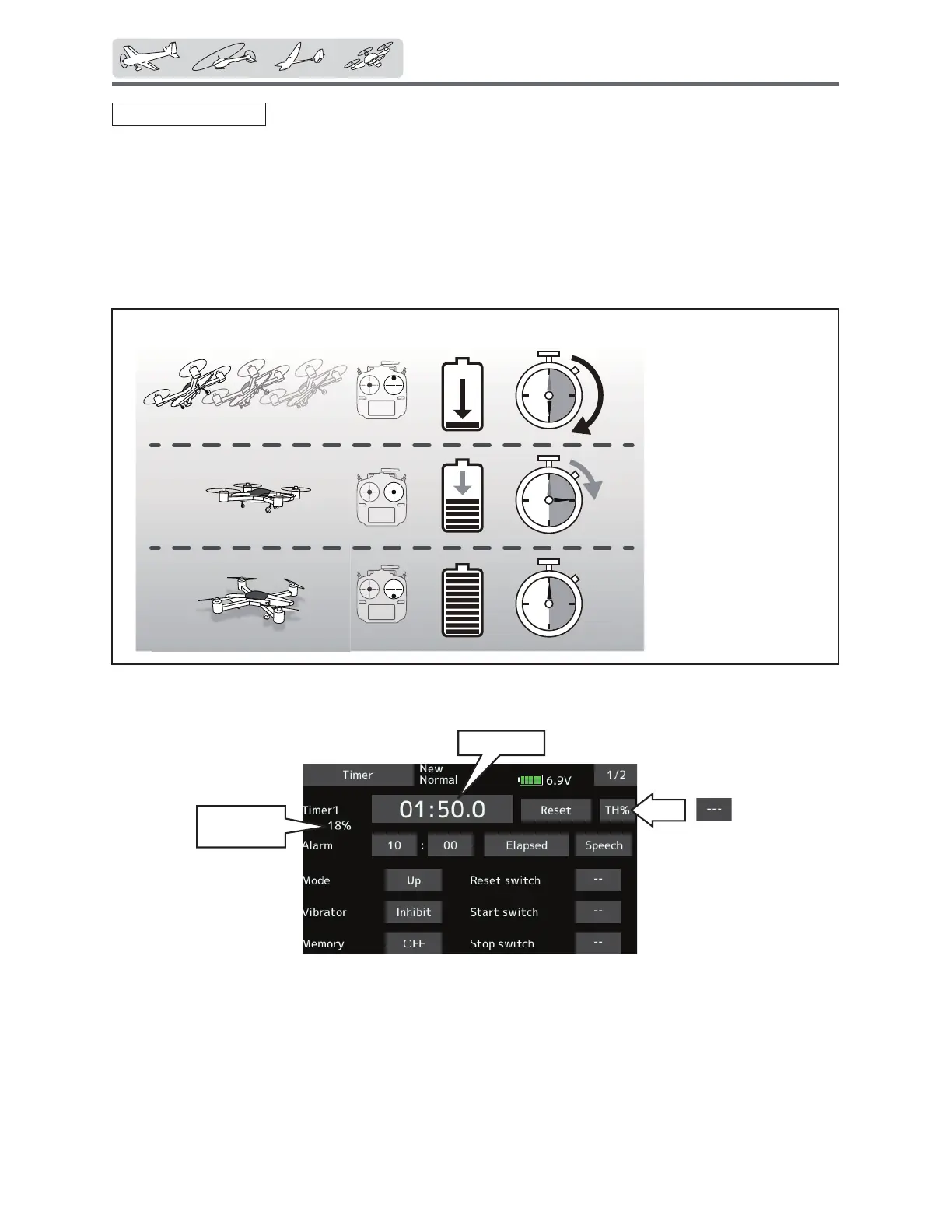 of the throttle stick. When the throttle stick is raised for faster speed, the speed of the timer usually
