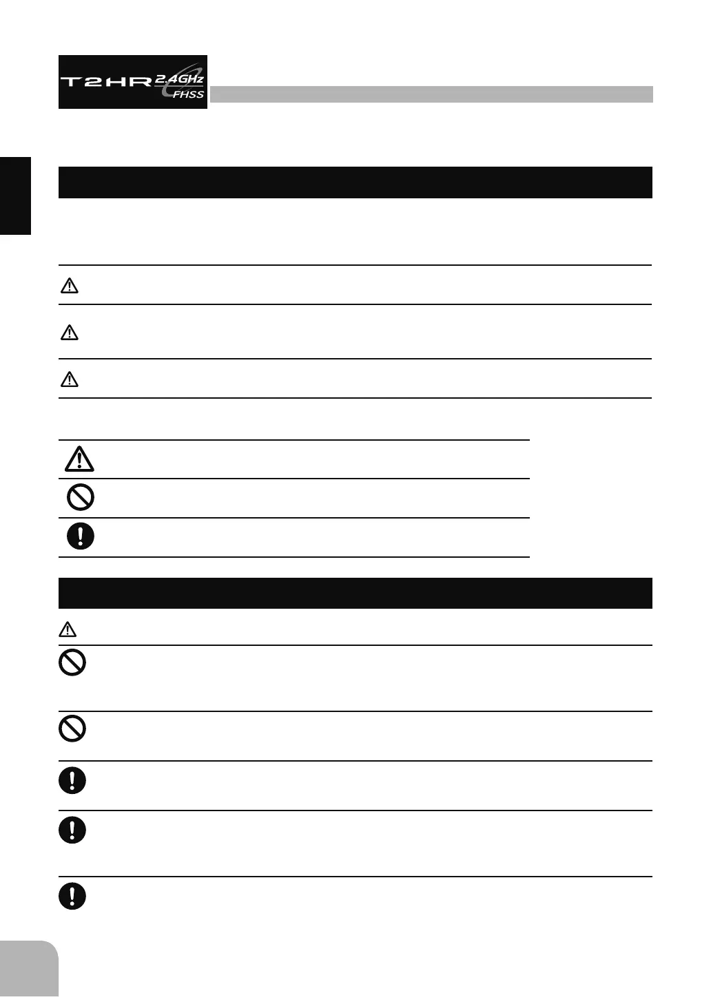 Do not cover/hold the built-in antenna part of T2HR-2.4G transmitter by your hand during running. Do