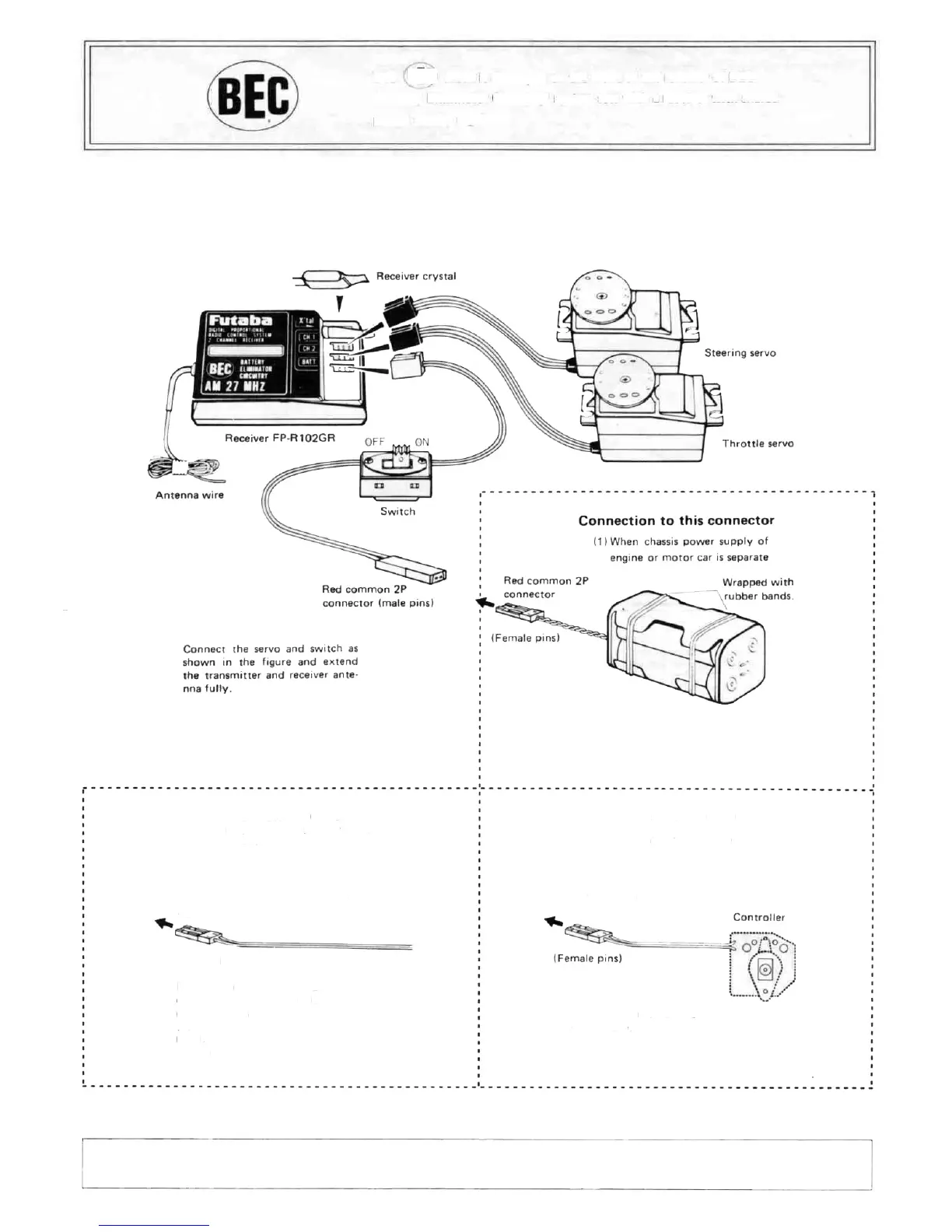 The Futaba BEC (Battery Eliminator Circuitry) system can also use a common power supply with the conventional four penlight