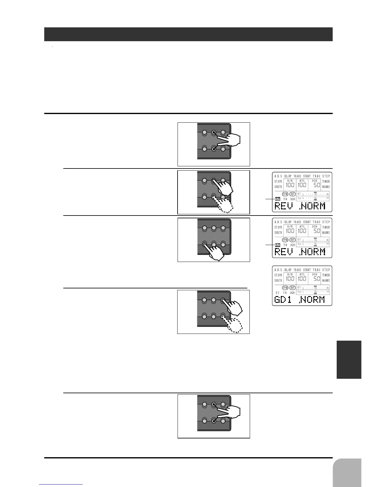 steering, throttle, and channel 3 operation. The data value increase/decrease direction