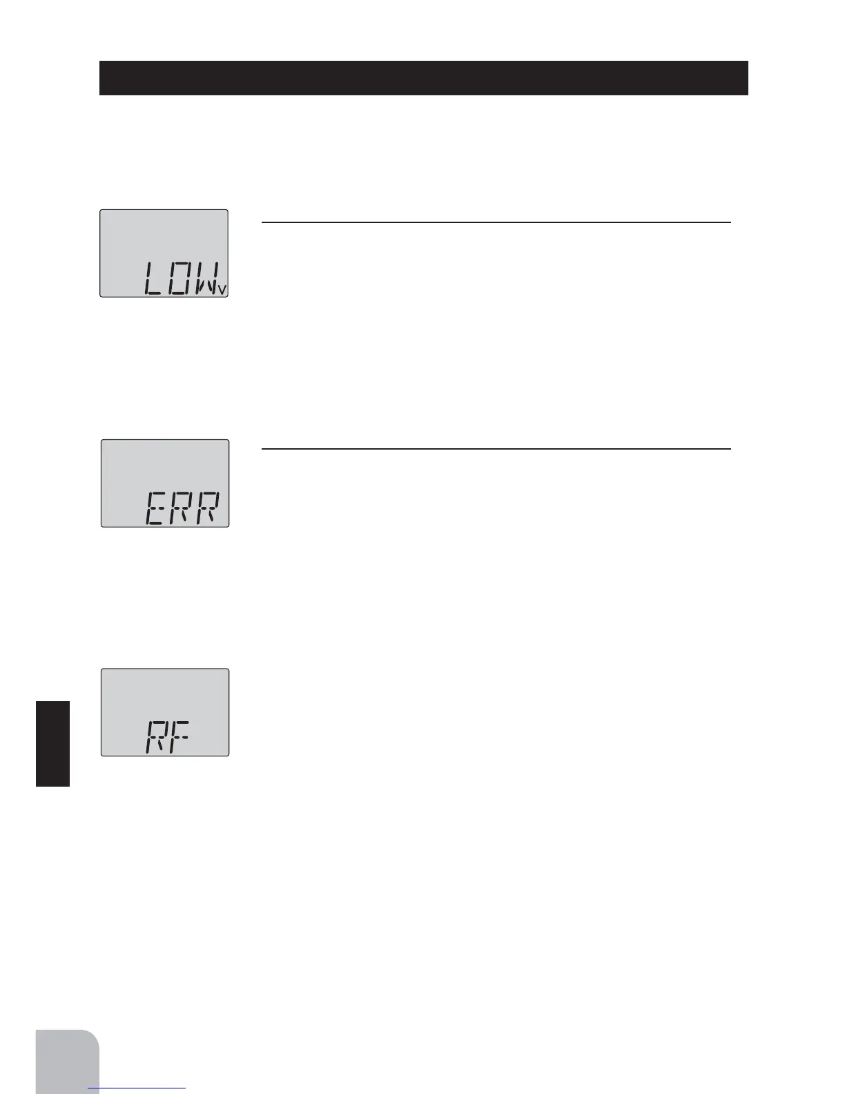 and "LOW v" will be displayed on the LCD screen.