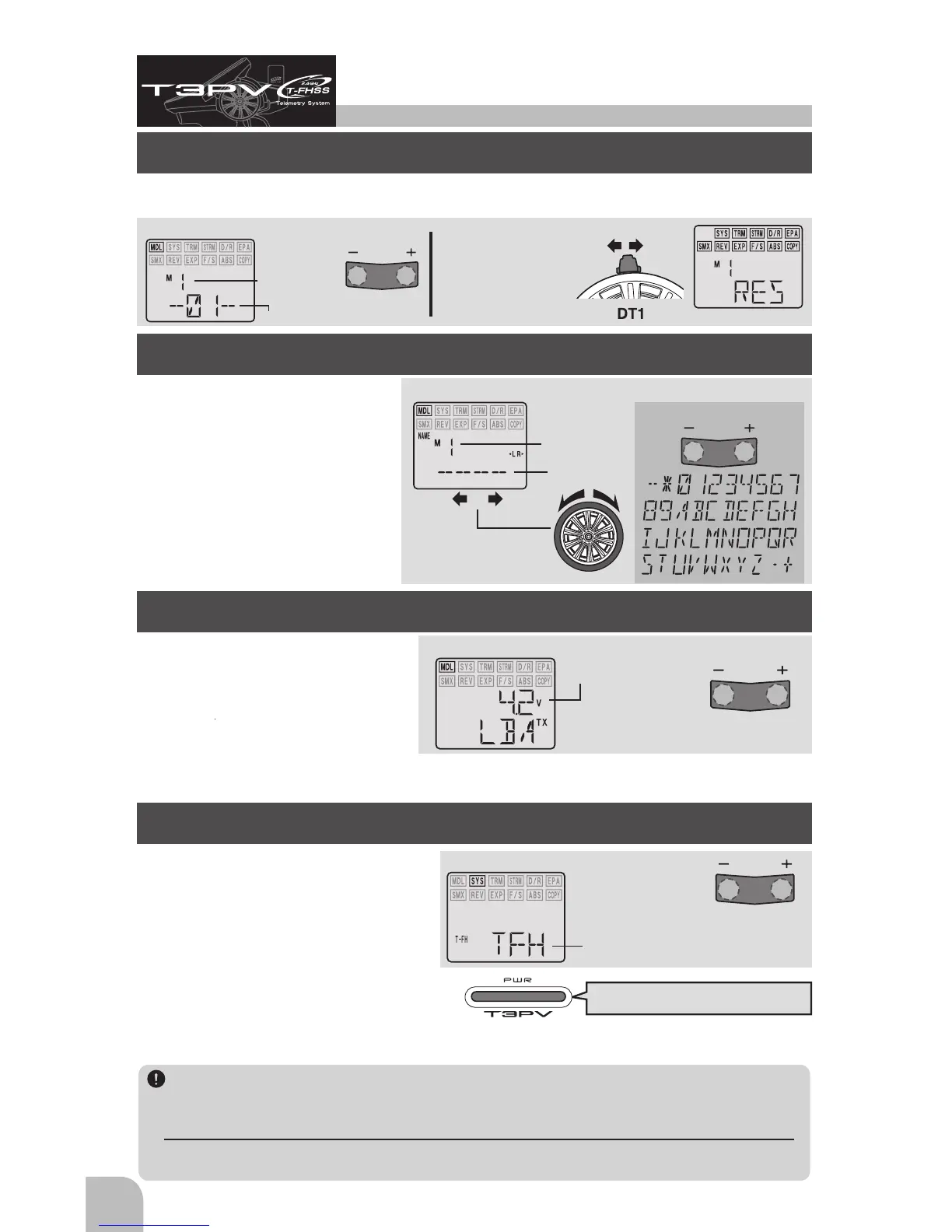 T-FHSS (TFH), T-FHSS High-Speed (TFH-HS) : The voltage of the receiver is shown to a transmitter.