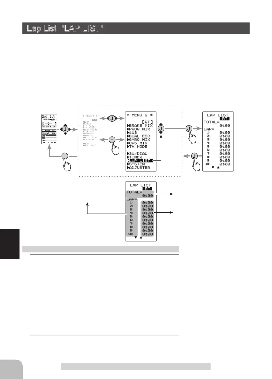 The lap list is displayed when checking the lap memory data (lap times) memorized by
