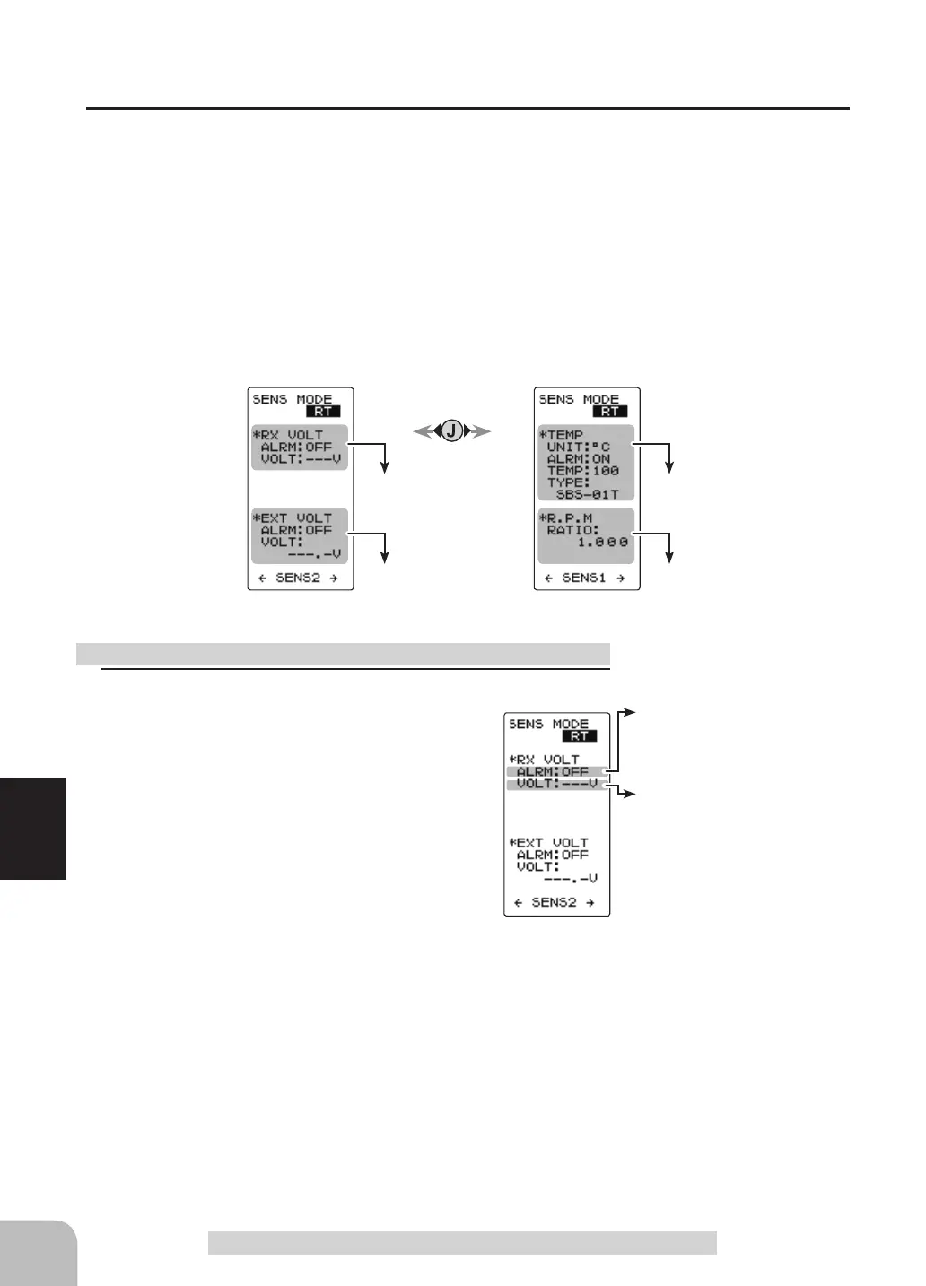 Refer to the map on page 116 for the sensor setting (SENS MODE) screen display.