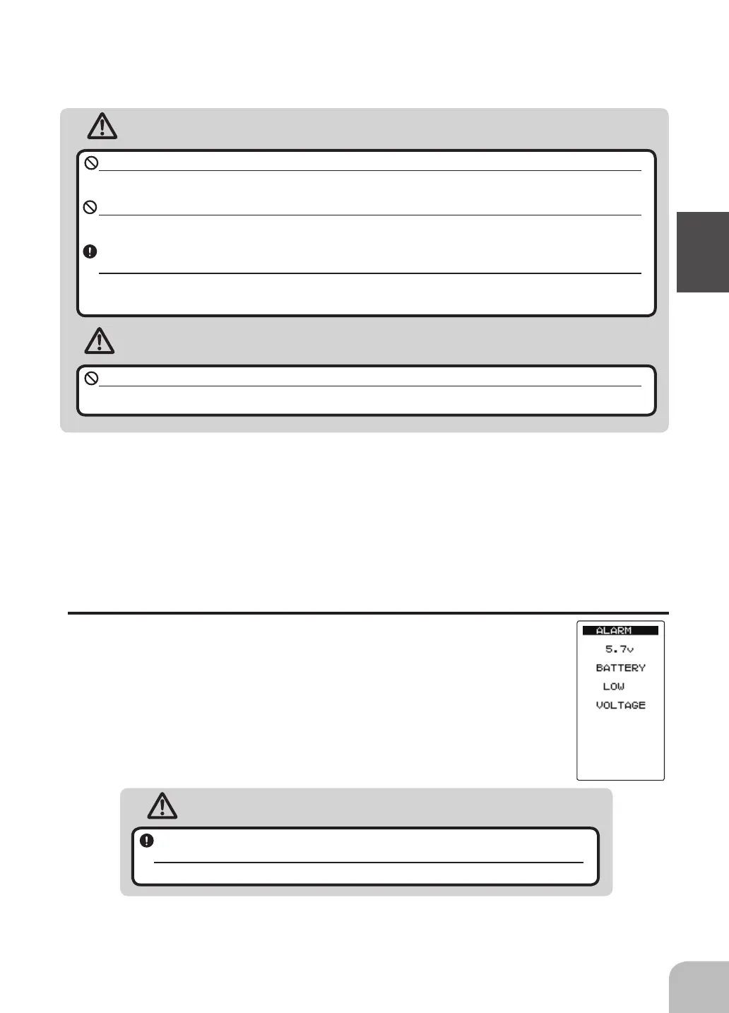 When a low battery alarm is generated, cease operation immediately and