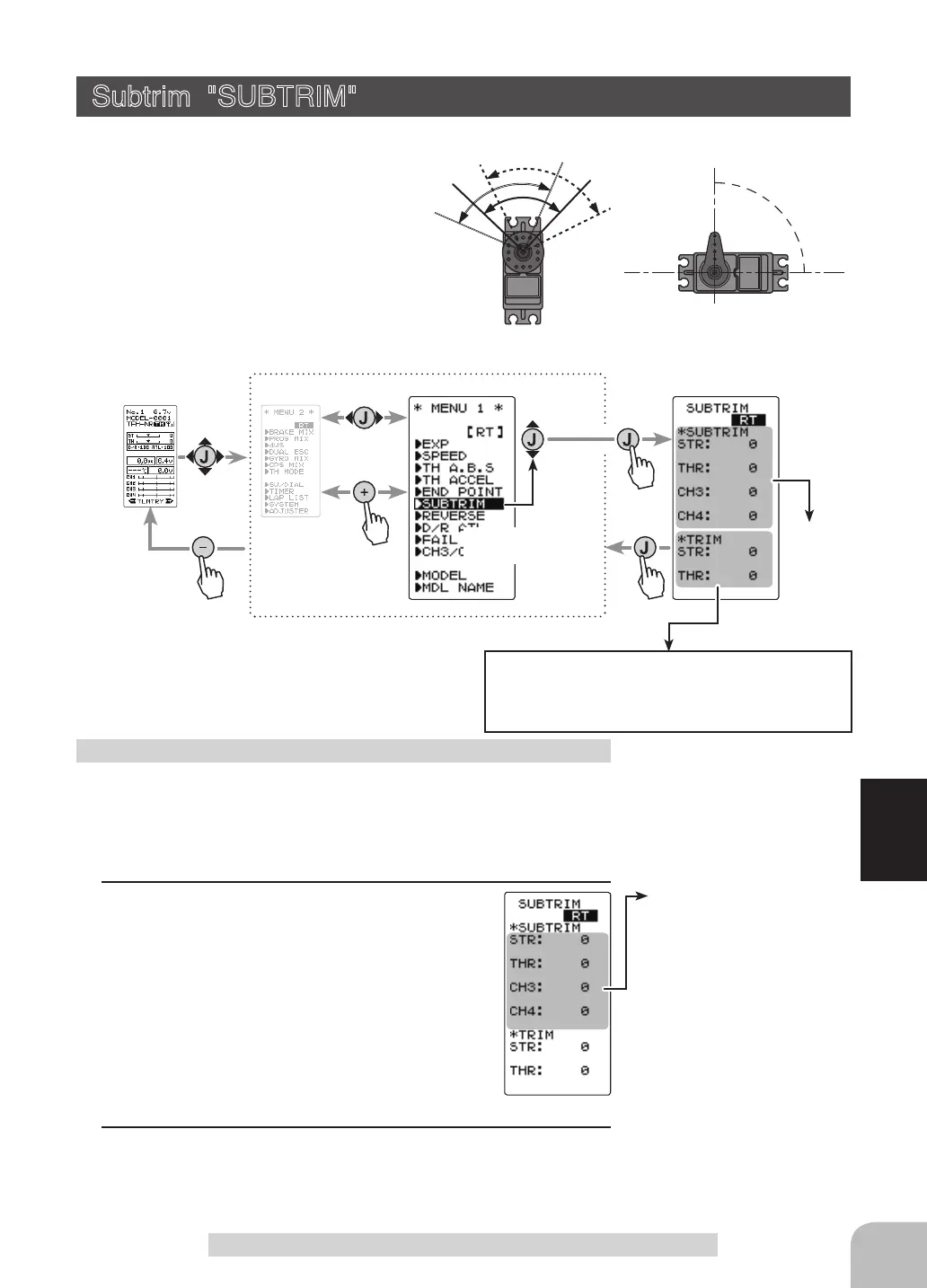 Use this function to adjust the neutral position of the steering, throttle, channel 3