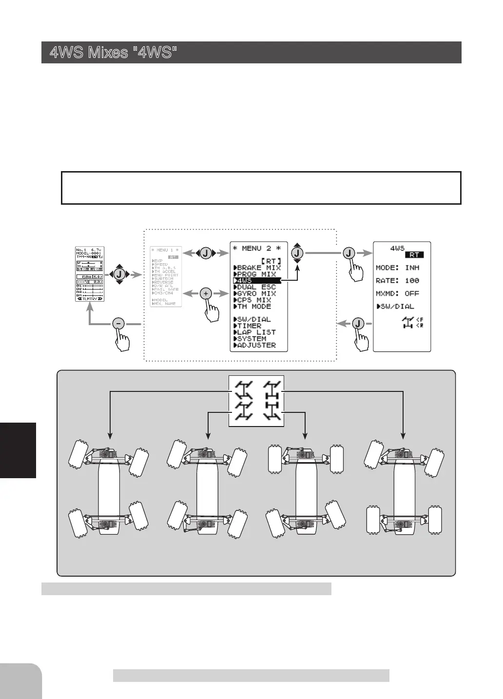 This function can be used with crawlers and other 4WS type vehicles. It is mixing which