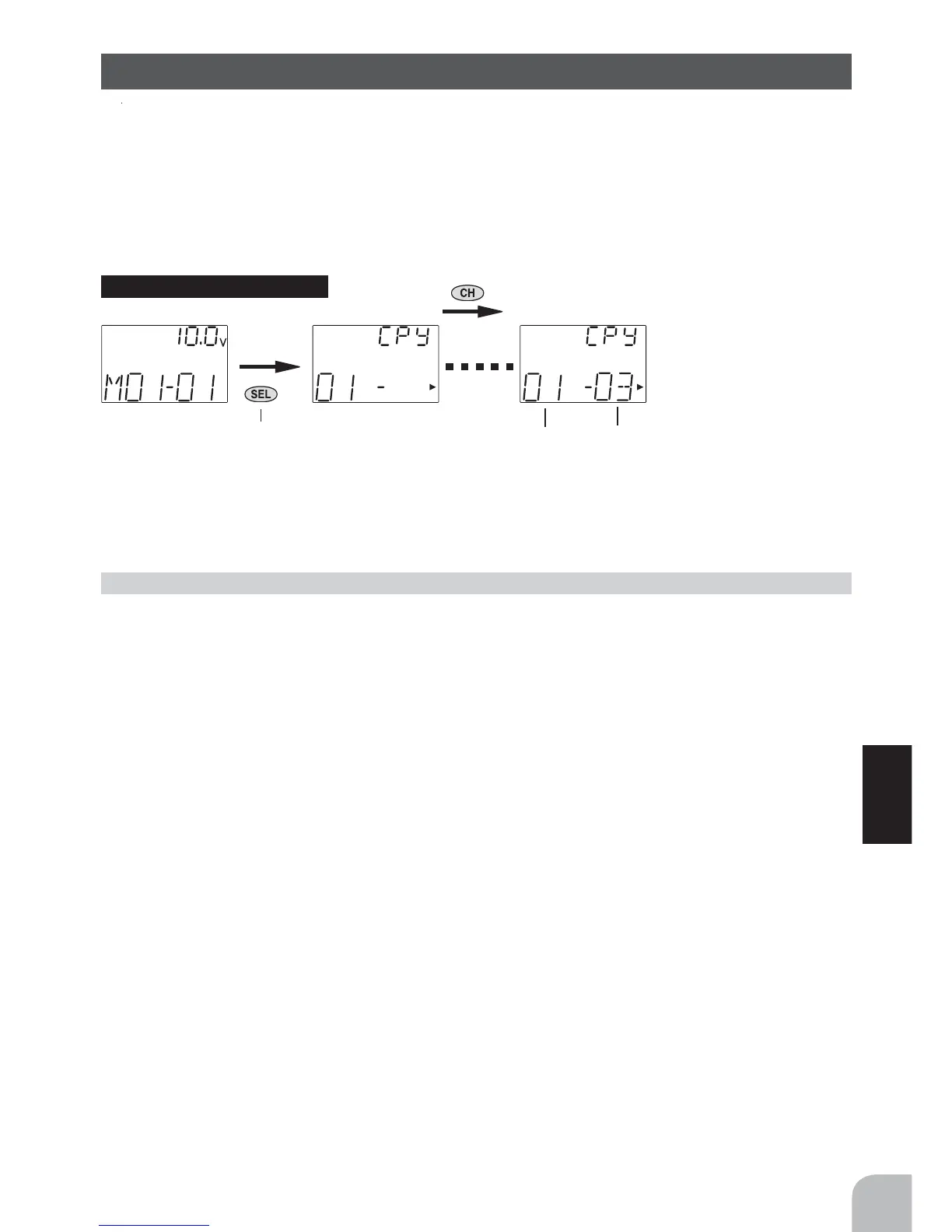 Use the (CH) button to select the copy destination model No.
