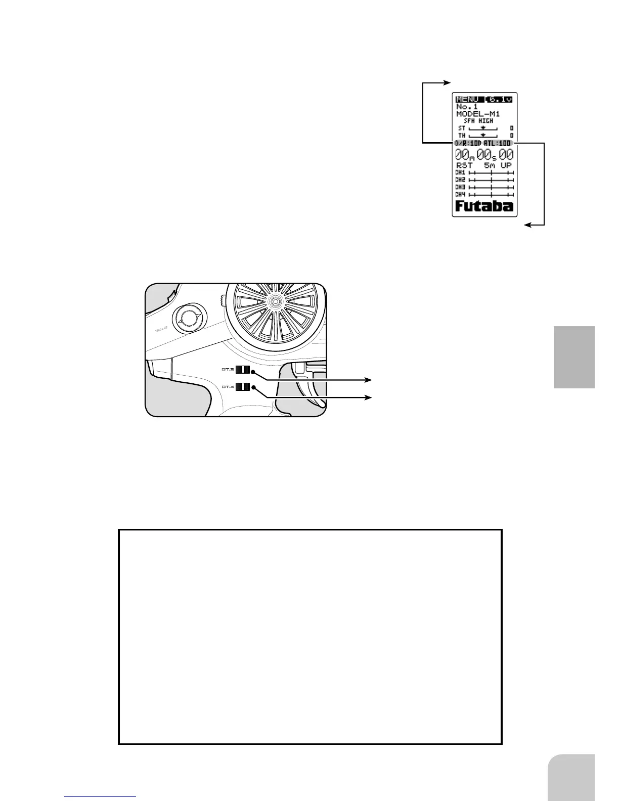 At initial set-up, steering dual rate (D/R) is assigned to the DT3