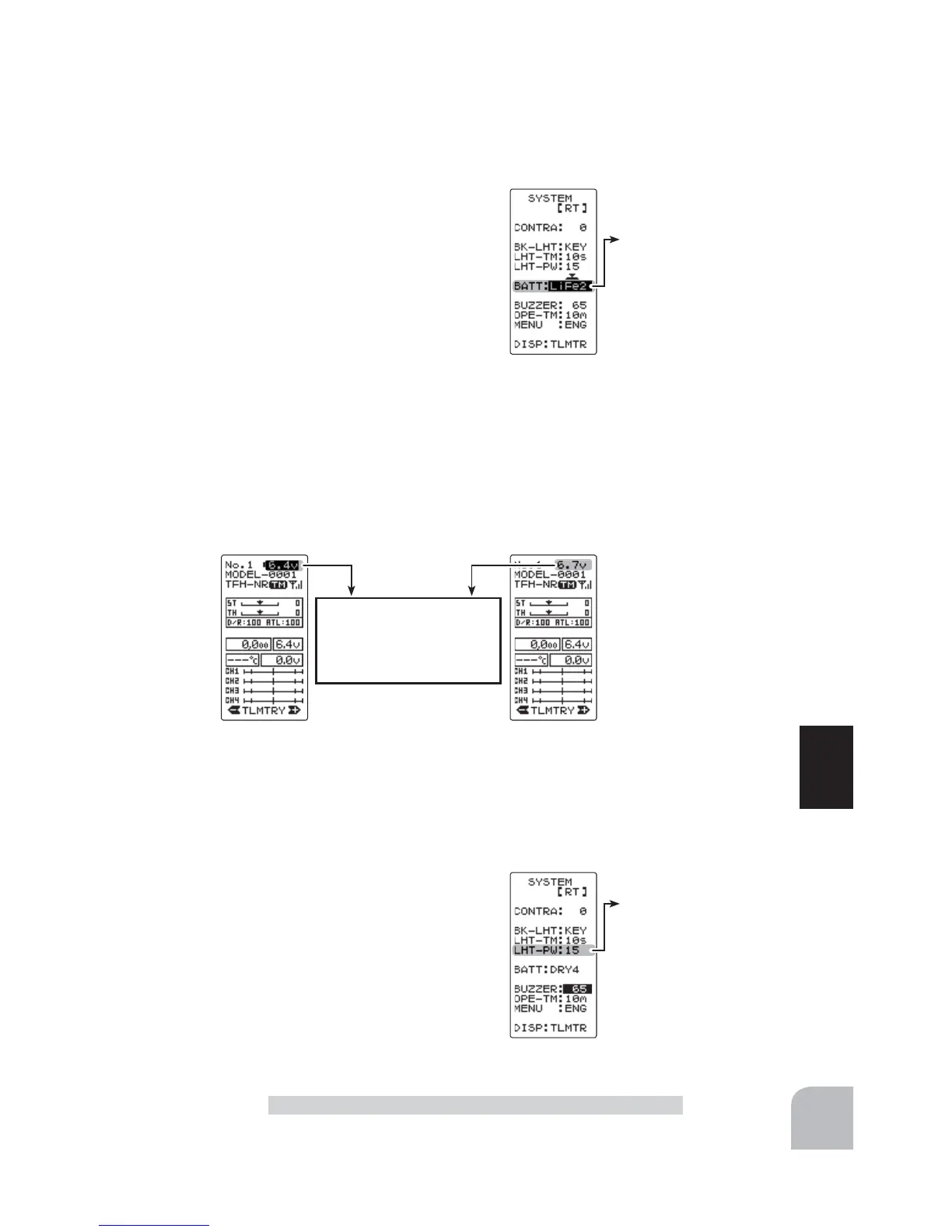 Select the setting item "BATT" by the (JOG)