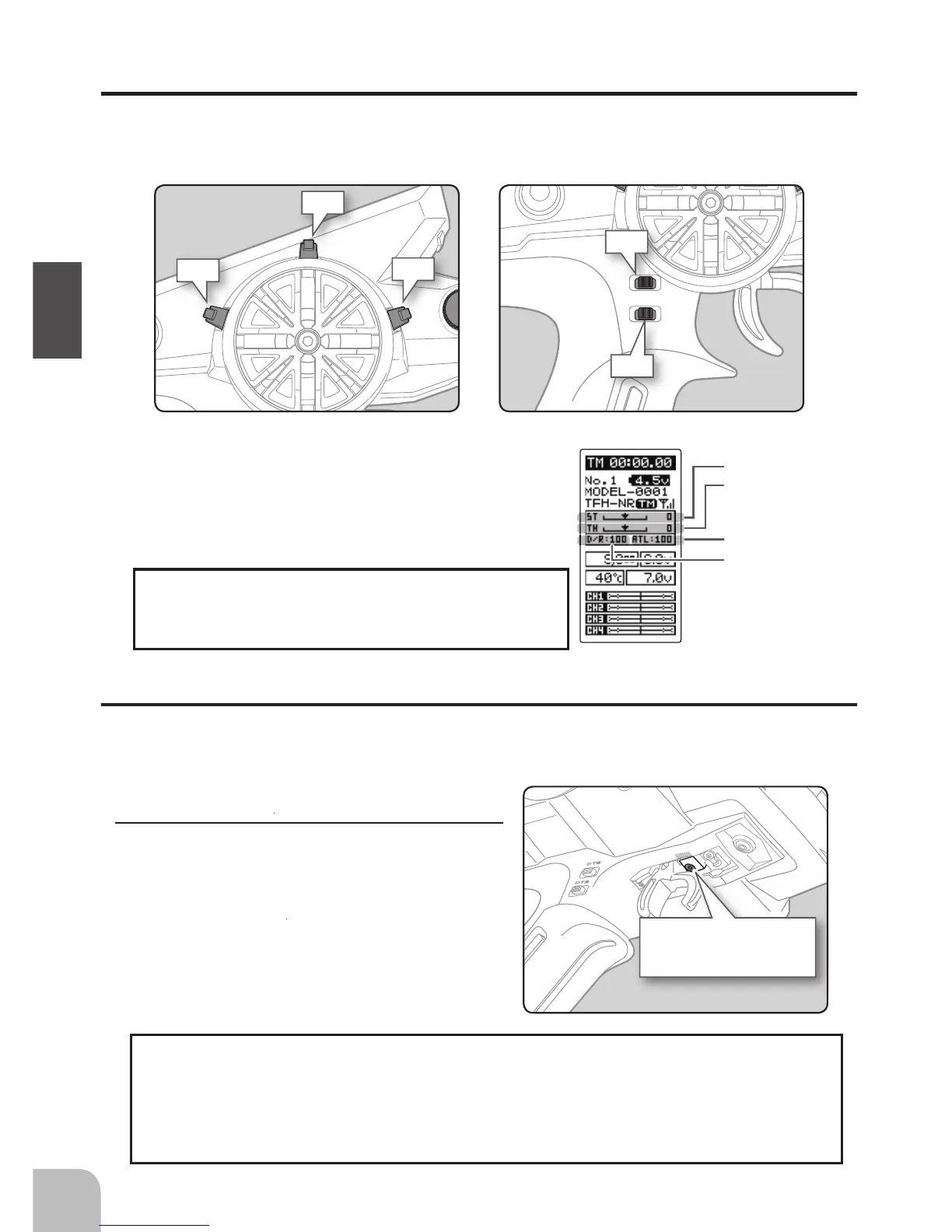 (Initial settings: DT1: Steering trim, DT2: Throttle trim, DT3: Channel 3, DT4: Steering D/R, DT5: ATL-Brake rate)