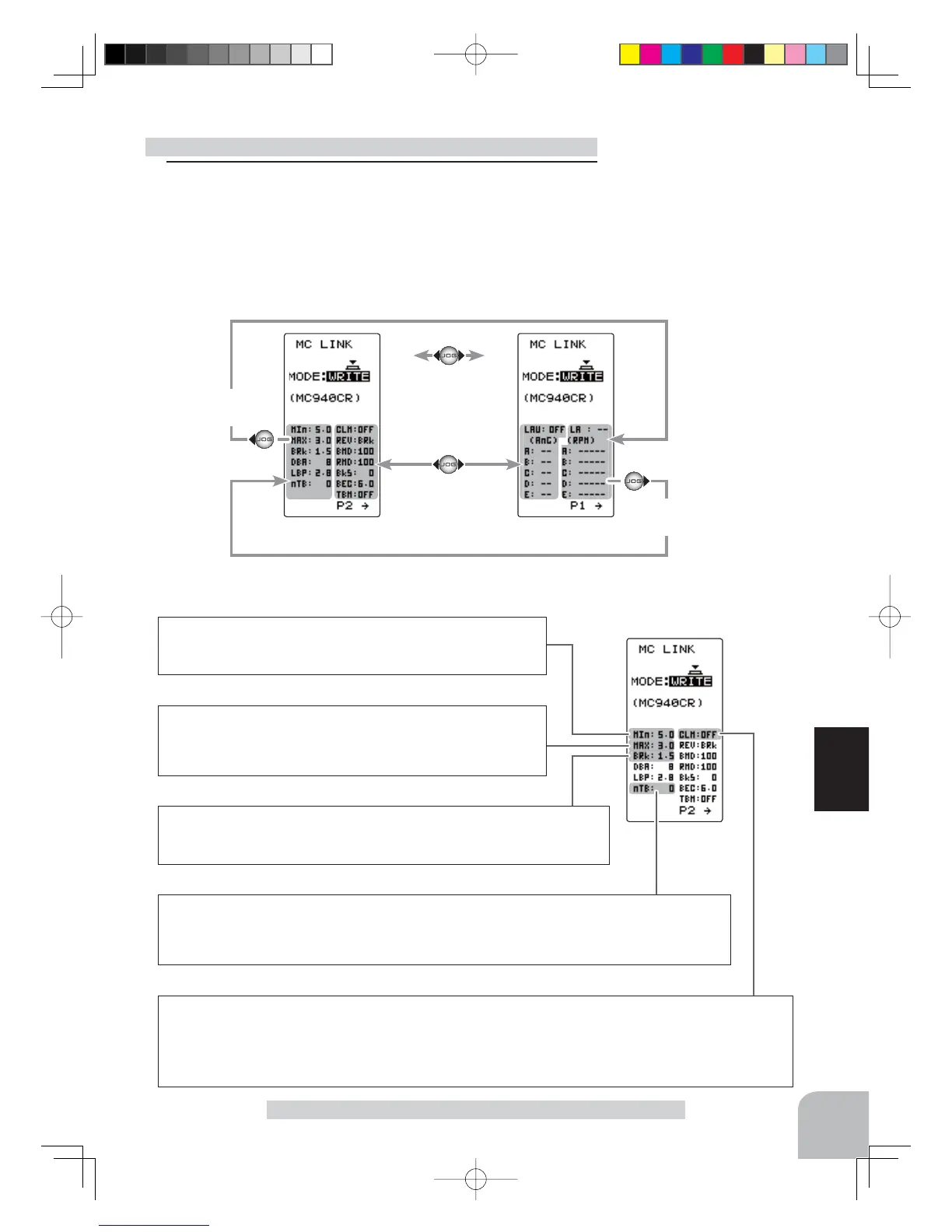 Select the setting item by the (JOG) button up or down.
