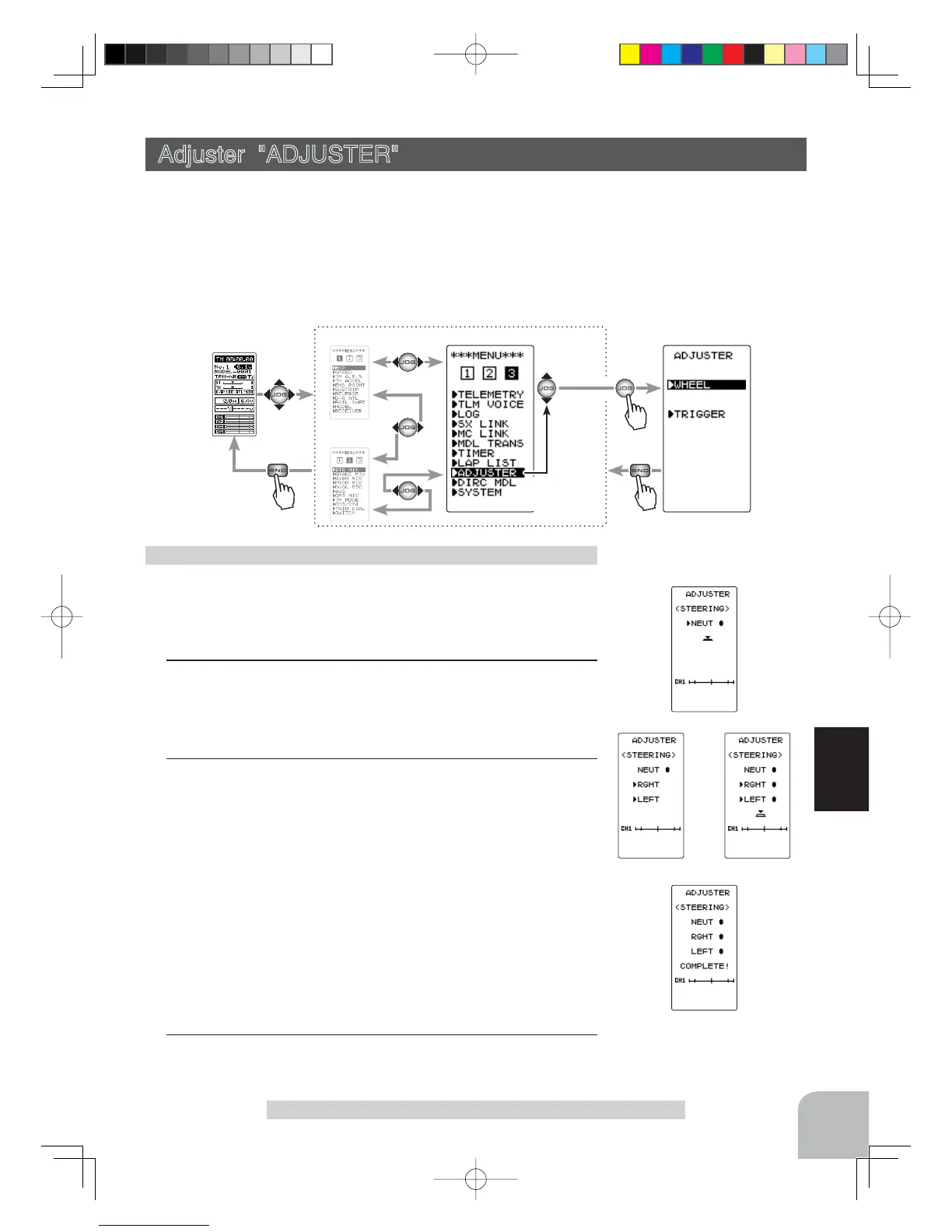 When fi nished with setting, return to the ADJUSTER screen by