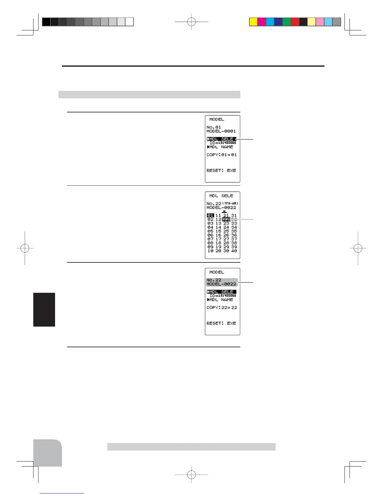 - Display the MODEL screen by referring to page 45.