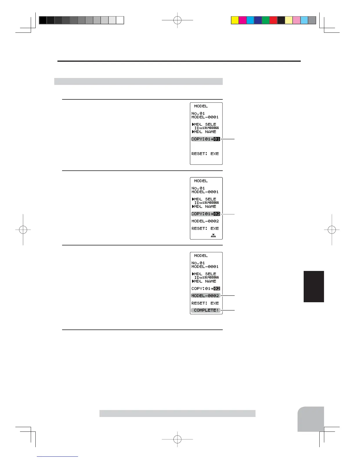 The contents of the currently selected model data can be copied to another model.