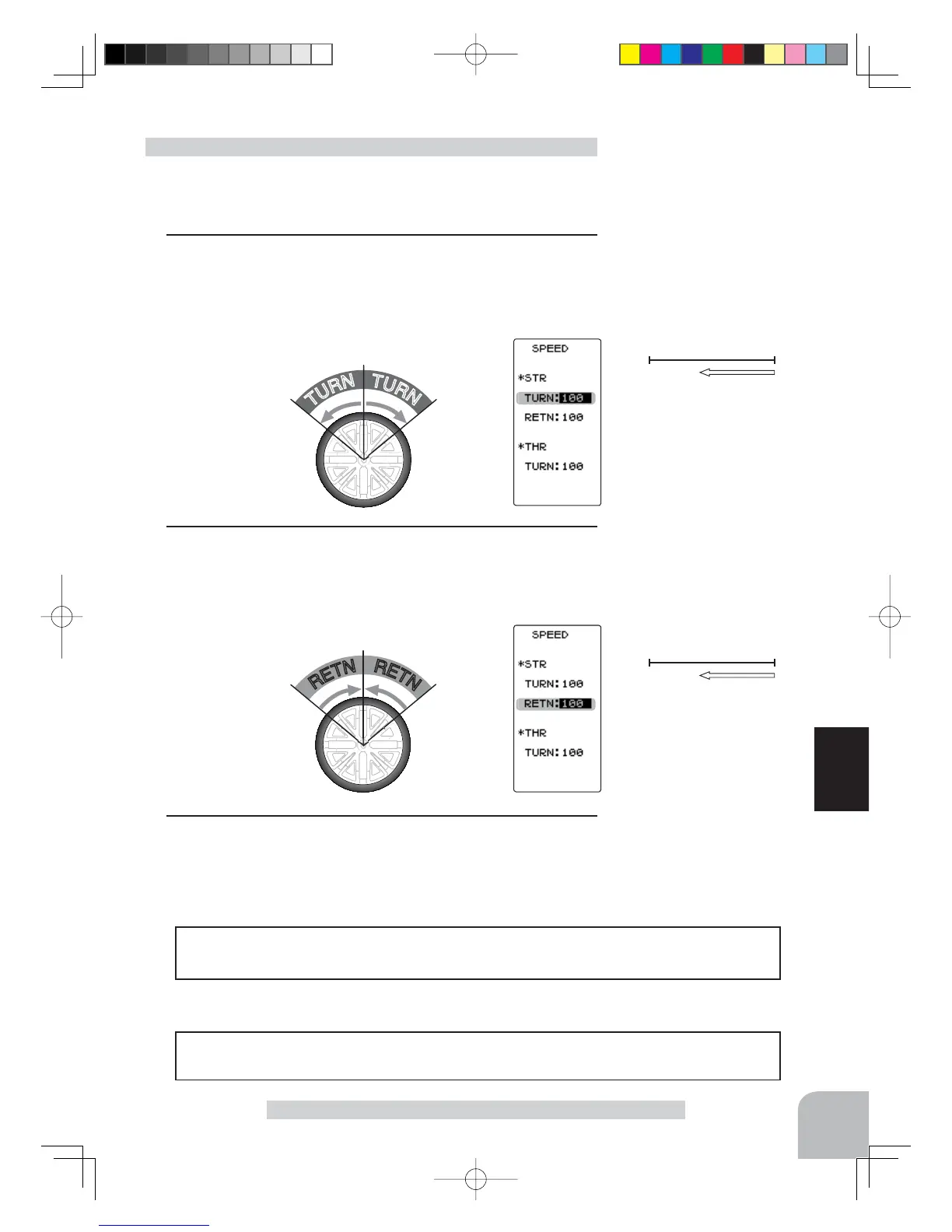On the SPEED screen, select the setting item STR "TURN" by