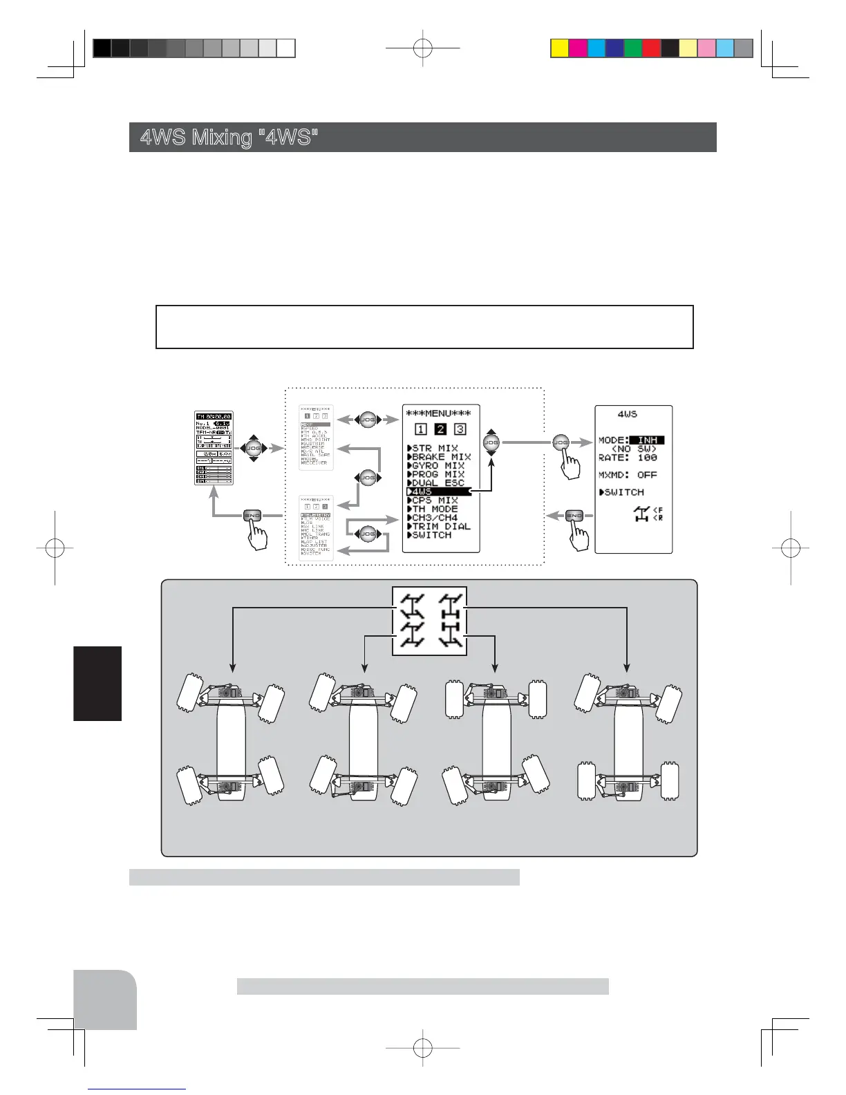 OFF (front side only), reverse phase, same phase, rear side only and other 4WS type switch-