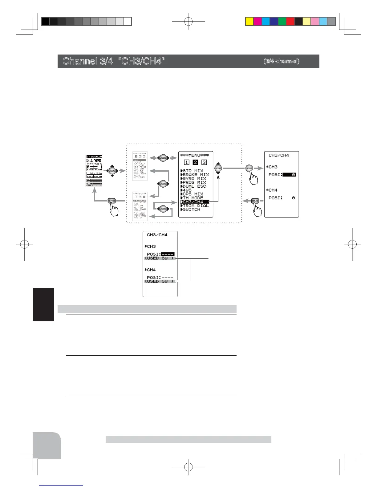 The channel 3/4 servo position can be set from the this screen. When CH3/4 is assigned