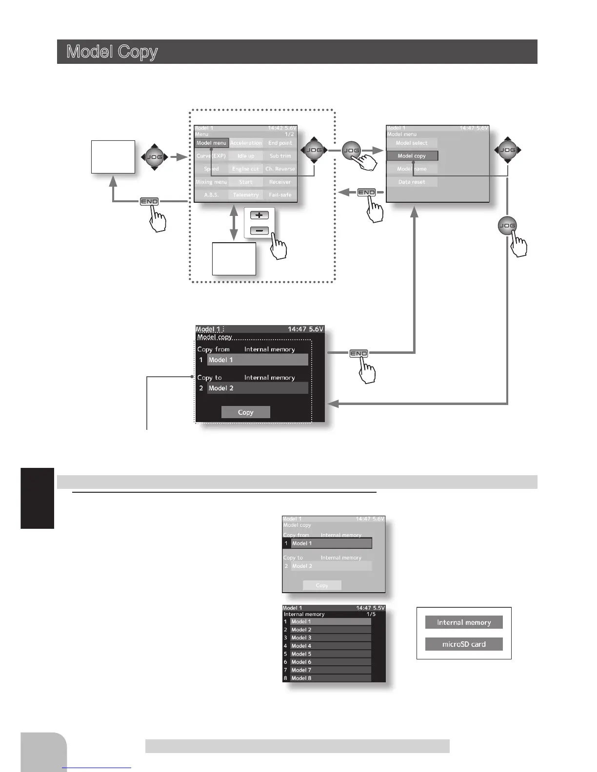The contents of the model memory can be copied to another model memory. The contents