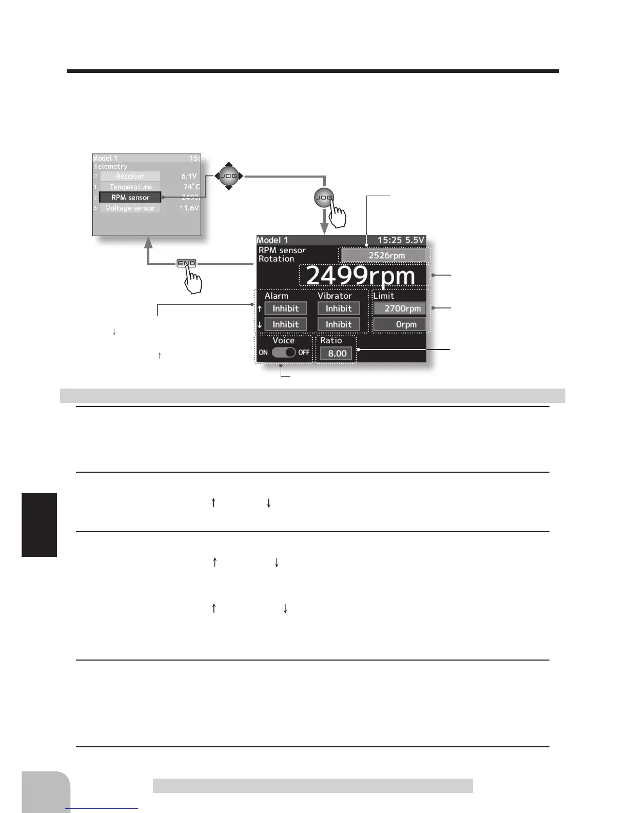 Speed information from an SBS-01RM (telemetry rotation sensor) sold separately is dis-