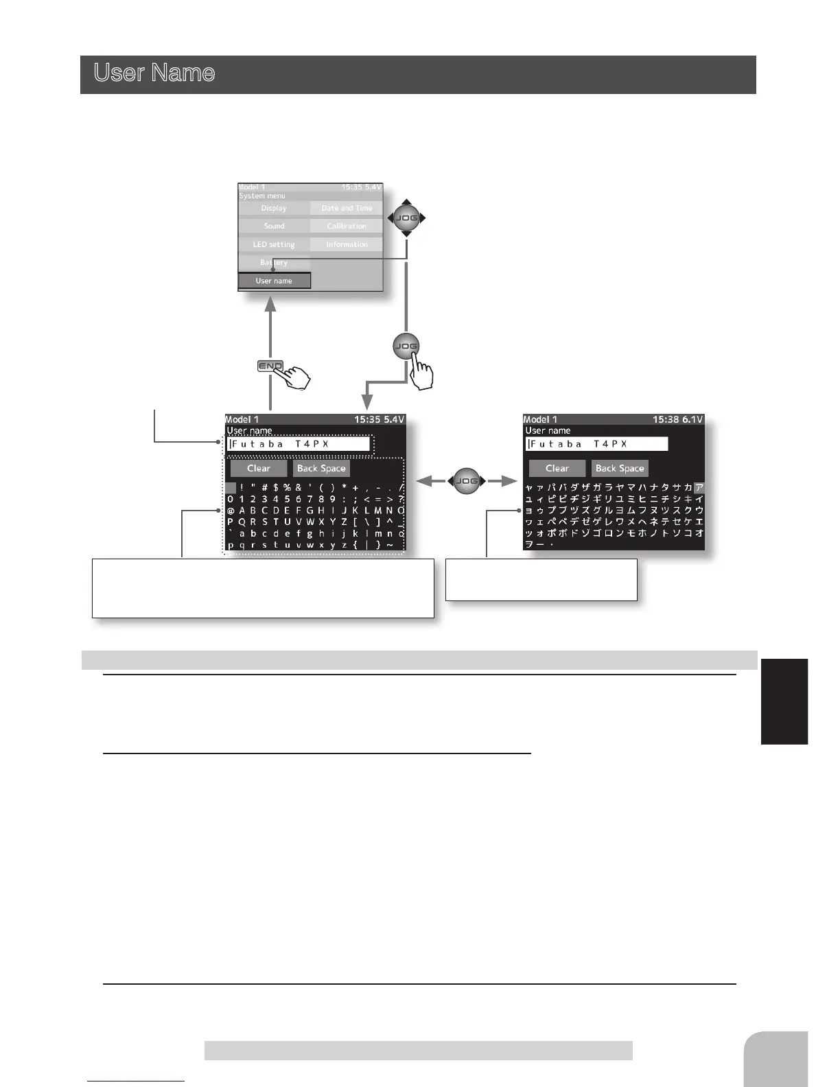 "Move the cursor to the user name character you want to set or change by pressing the (+)